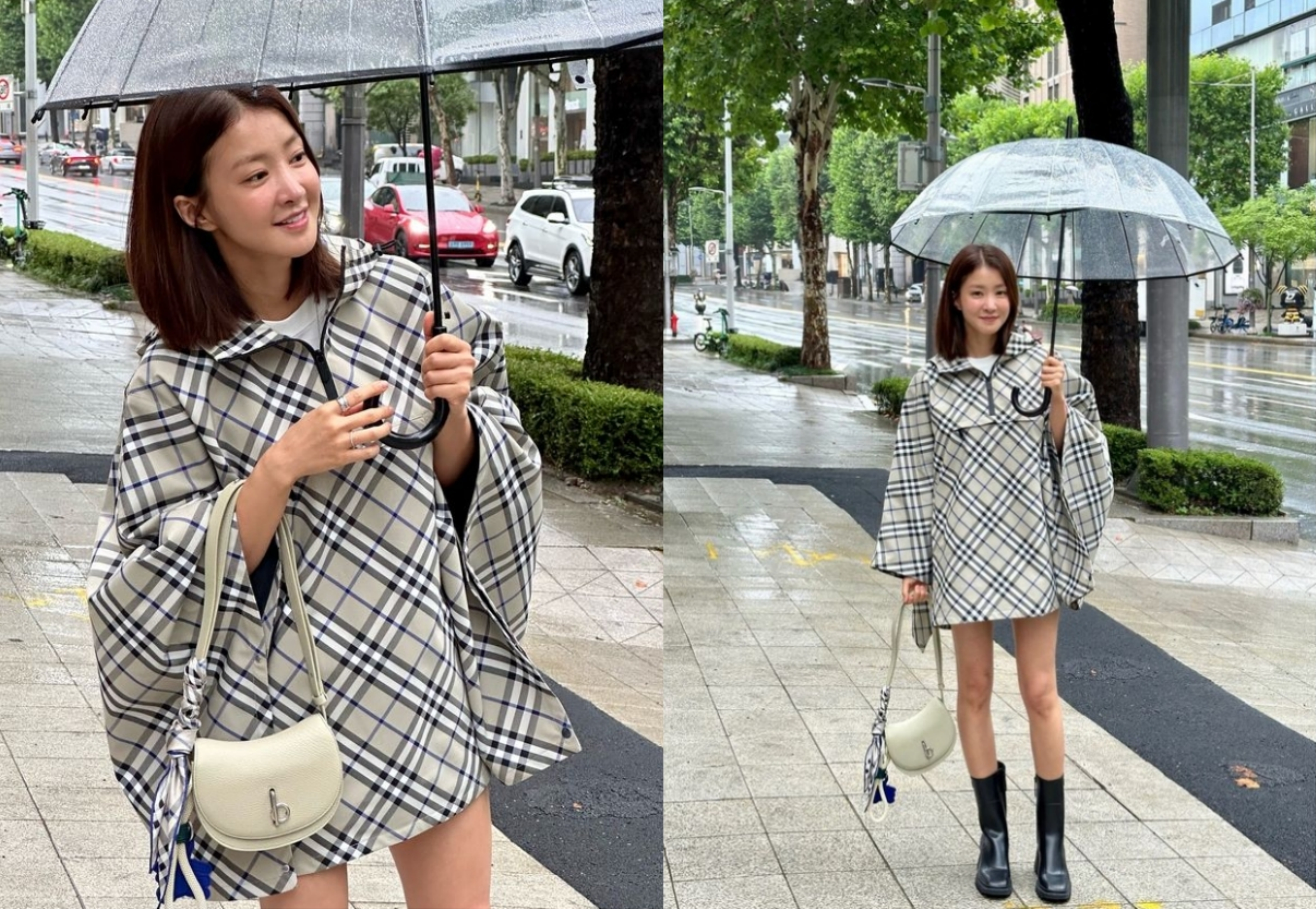 세련미가 톡톡 튀는 배우 이시영이 버버리만의 특별한 체크무늬가 더해진 레인코트를 입고, 장마 패션을 선보였다.