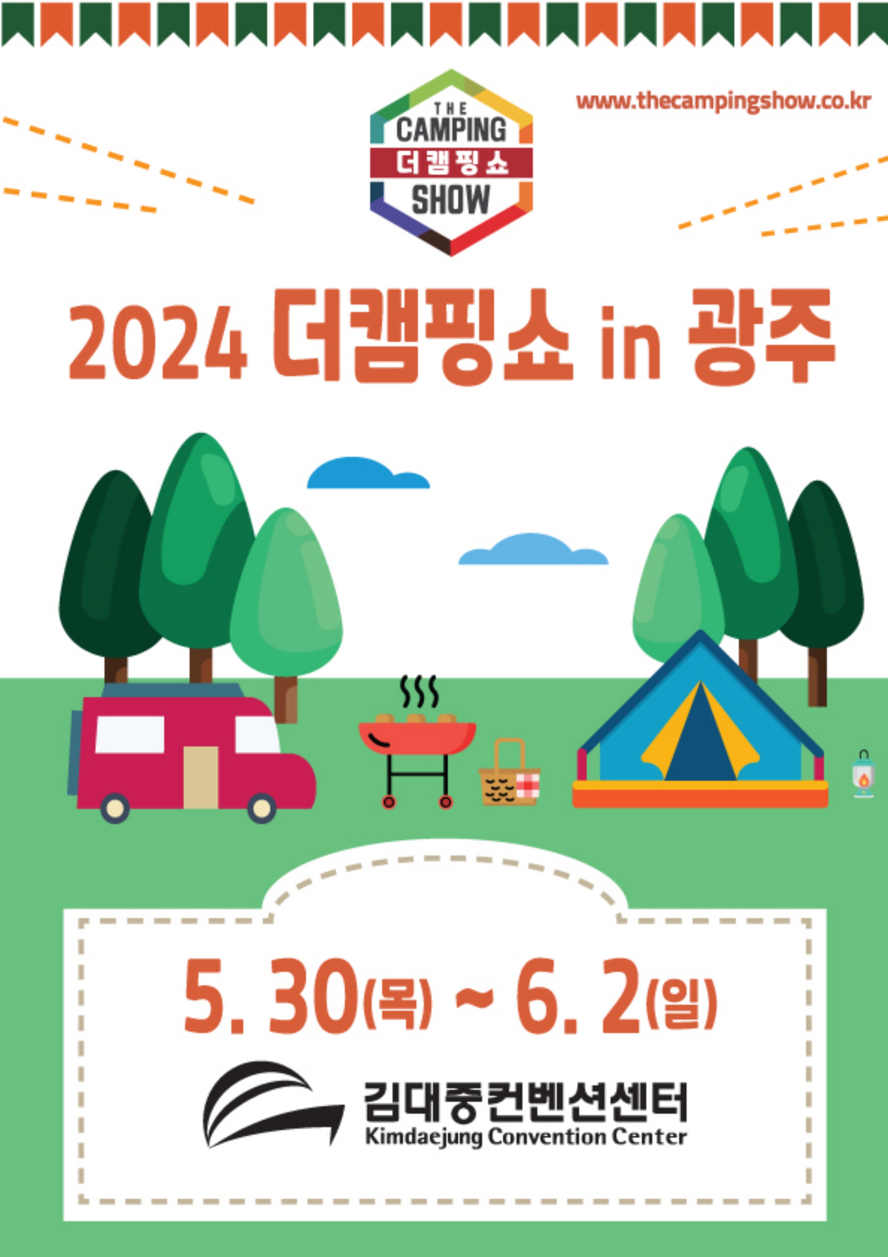 더캠핑쇼 사무국이 주최하는 2024 더캠핑쇼 in 광주가 오는 5월 30일(목)부터 6월 2일(일)까지 광주 김대중컨벤션센터에서 개최된다.