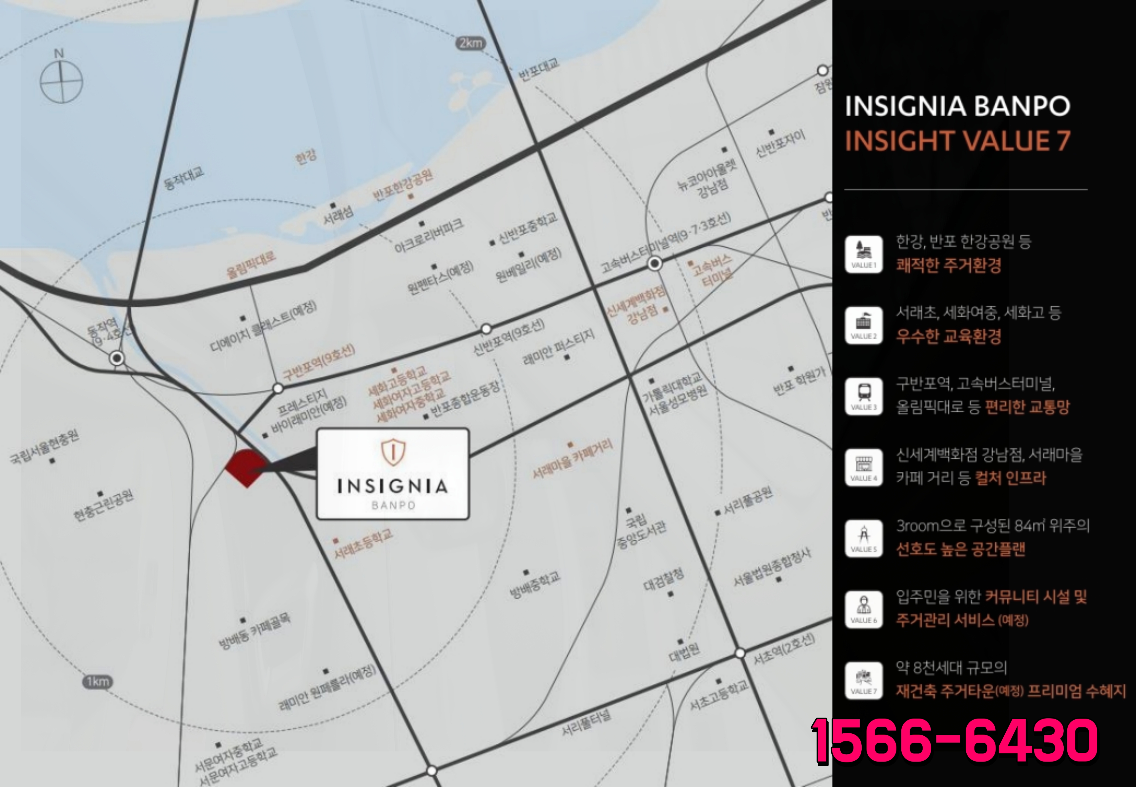 반포 학원가도 반경 2km 이내에 위치해 있어 교육 환경이 우수합니다.