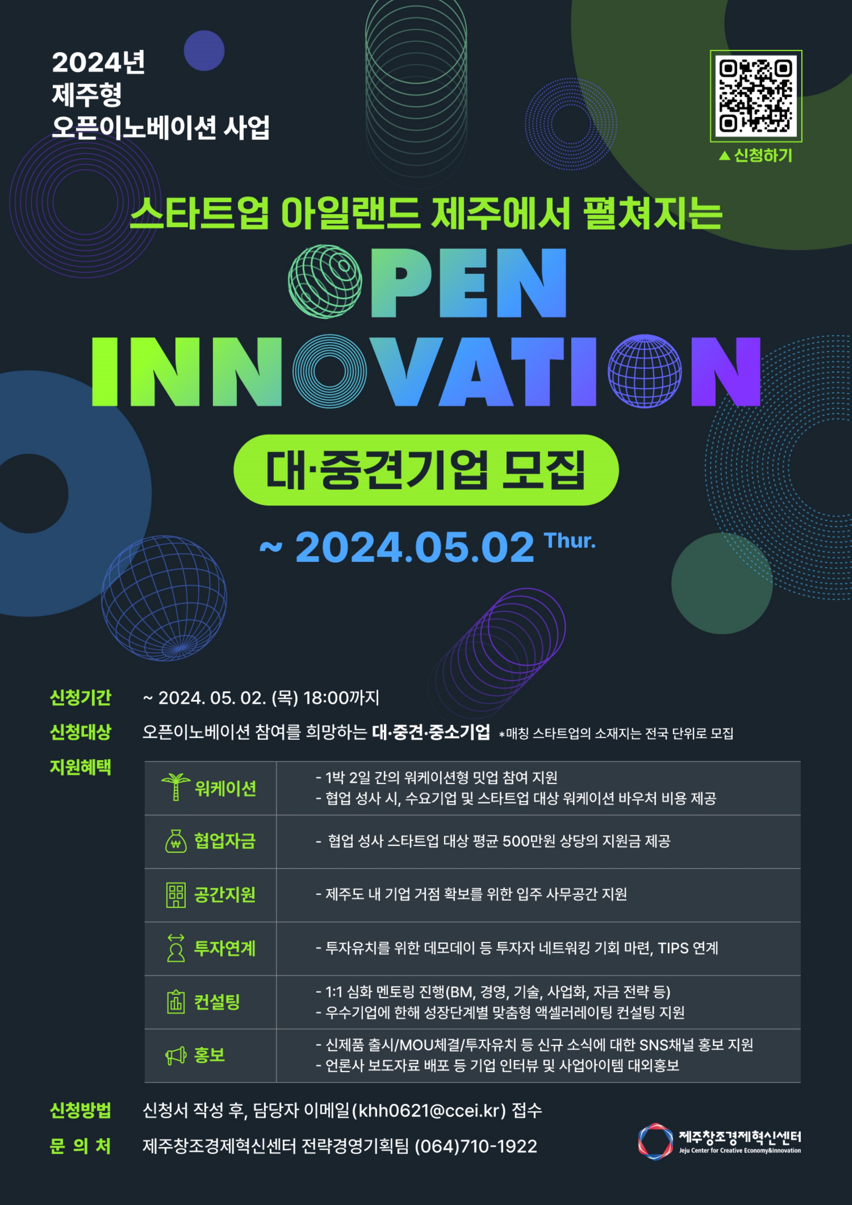제주창조경제혁신센터 제주형 오픈이노베이션 참여 대기업 중견기업 모집