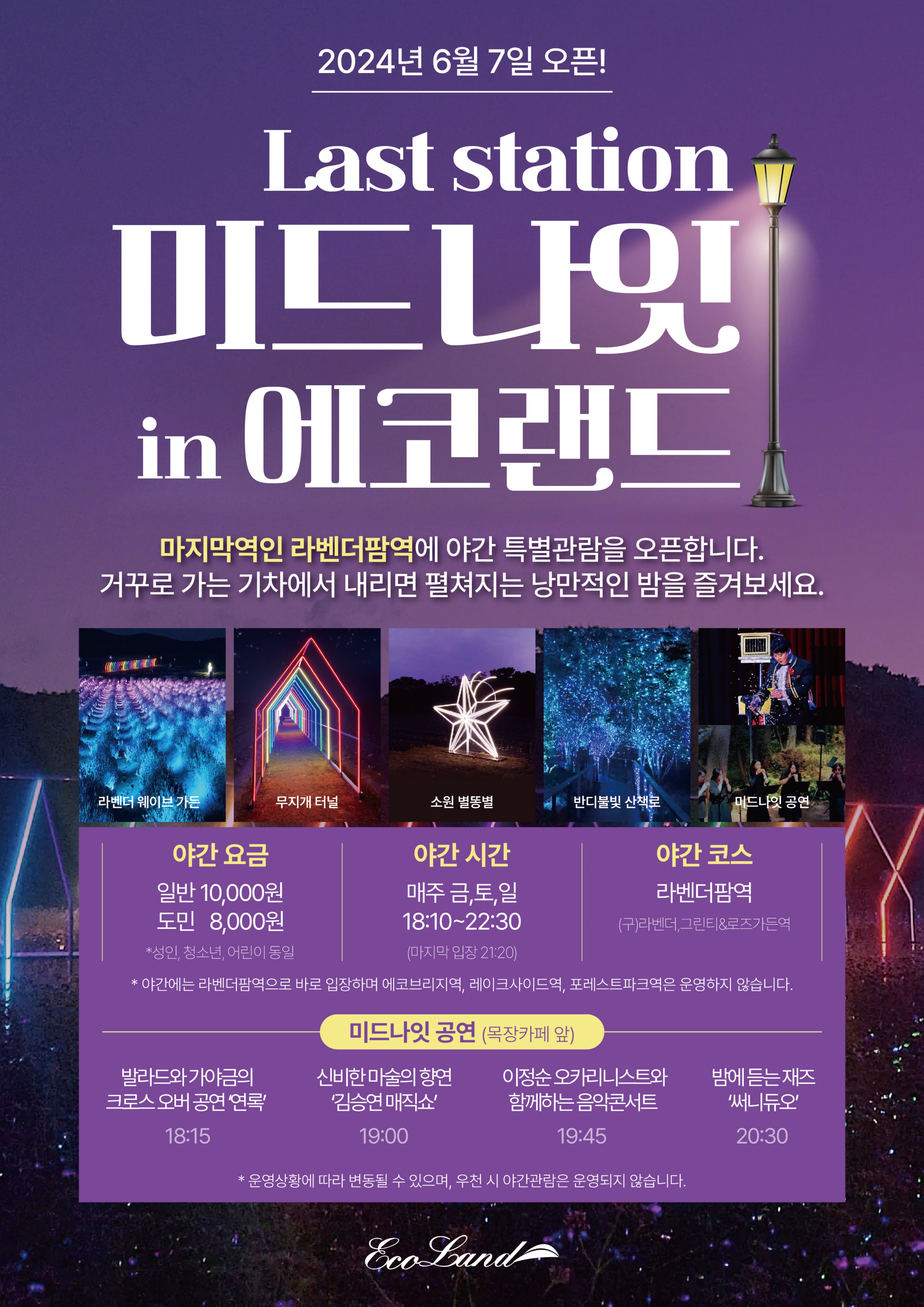 미드나잇 인 에코랜드라는 타이틀로 진행되는 이번 야간개장은 연인들의 사랑을 주제로 하며, 라벤더 팜 역 주변에서 진행된다.