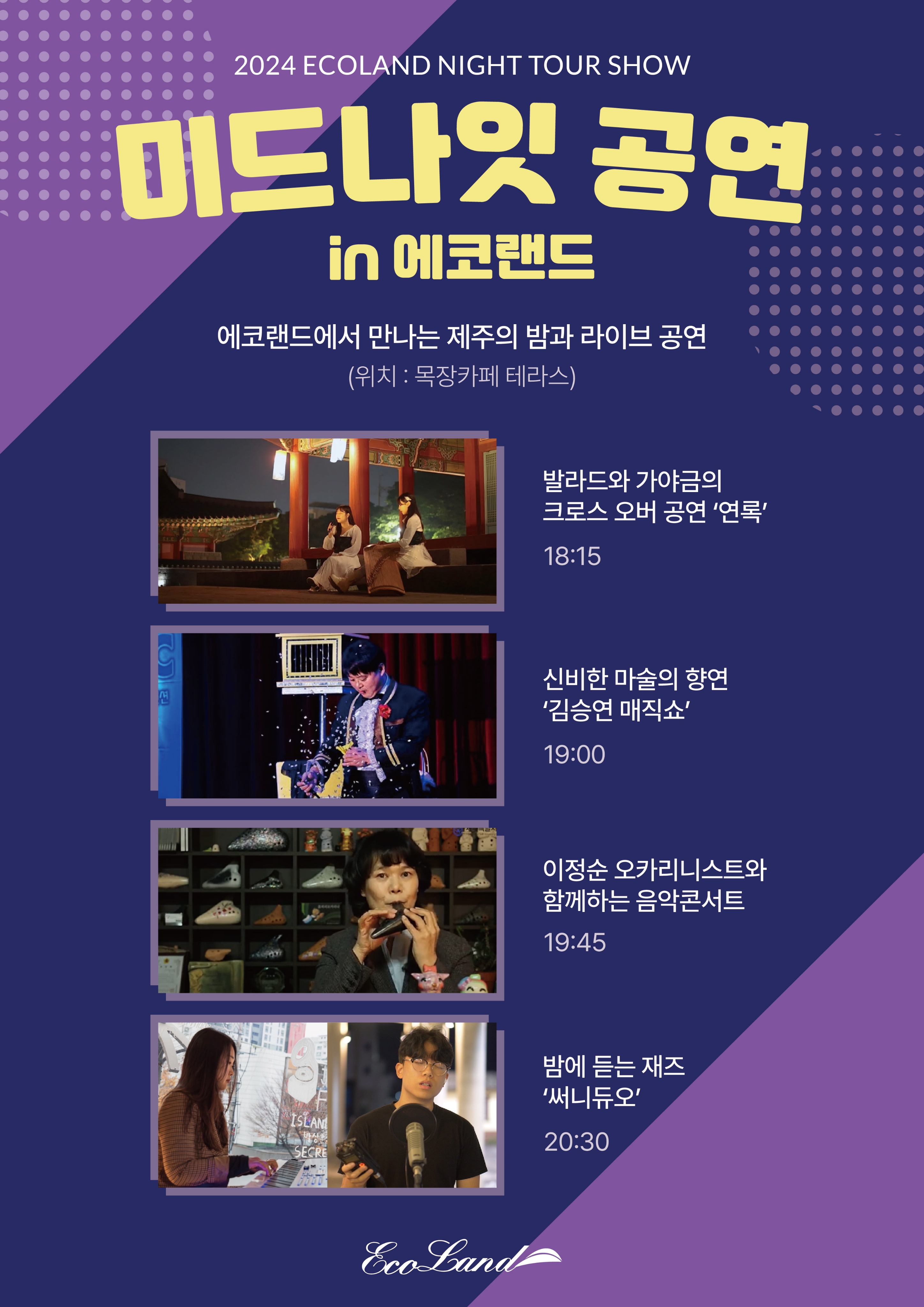 가야금과 보컬의 크로스오버 뮤지션 연록, 오카리스트 이정순과 아미고스 팀의 오카리나 연주회(국제생활교육음악협회)가 이루어지며, 제주에서 활동하는 마술사 김승연이 유쾌한 마술공연을 선보이는 한편 재즈뮤지션 써니듀오가 아름다운 제주의 밤을 마법 같은 음악으로 수놓는다.