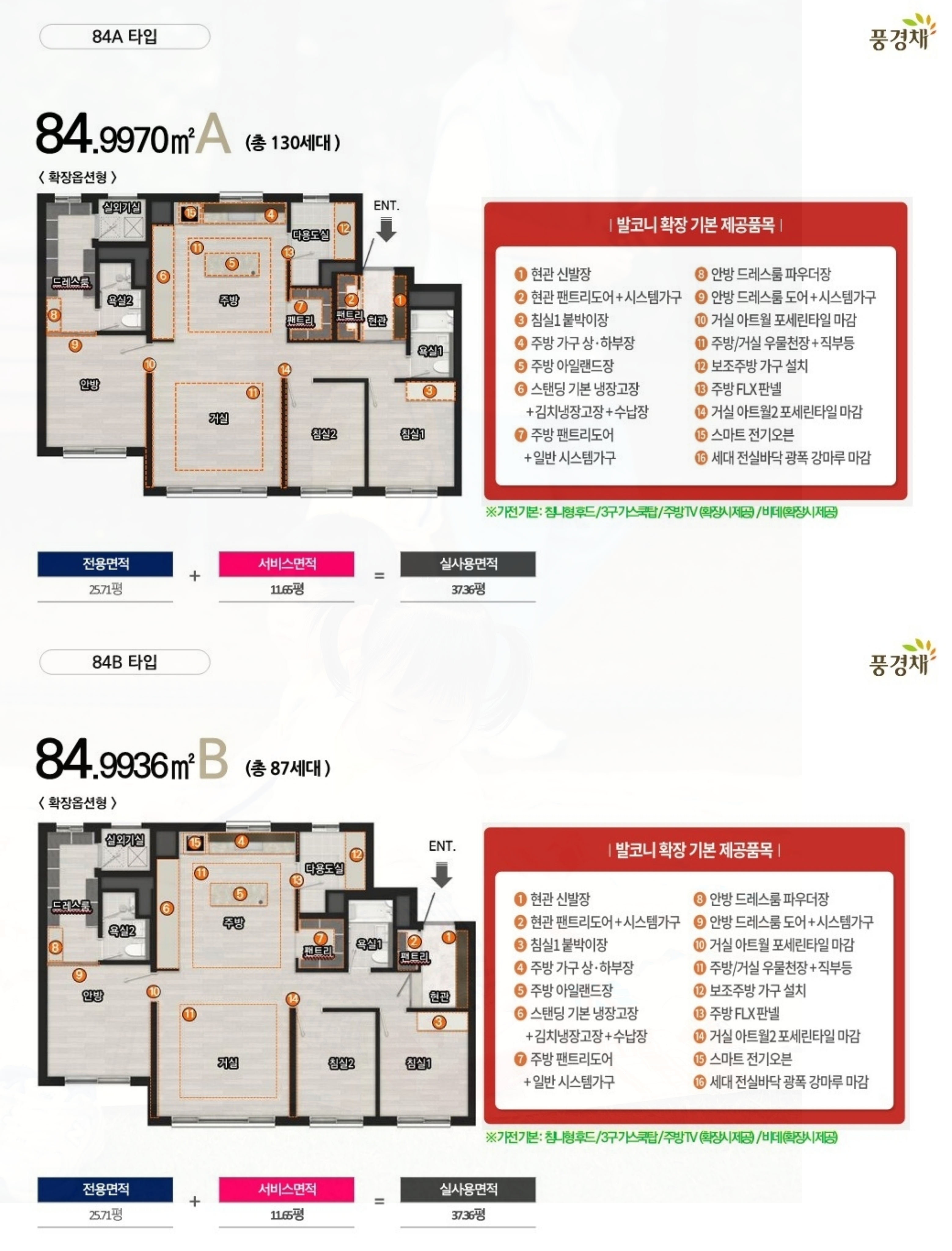 84A 타입의 경우 포베이 판상형 구조이며 , 거실과 주방의 맞통풍 구조로 설계가 되어 있습니다.