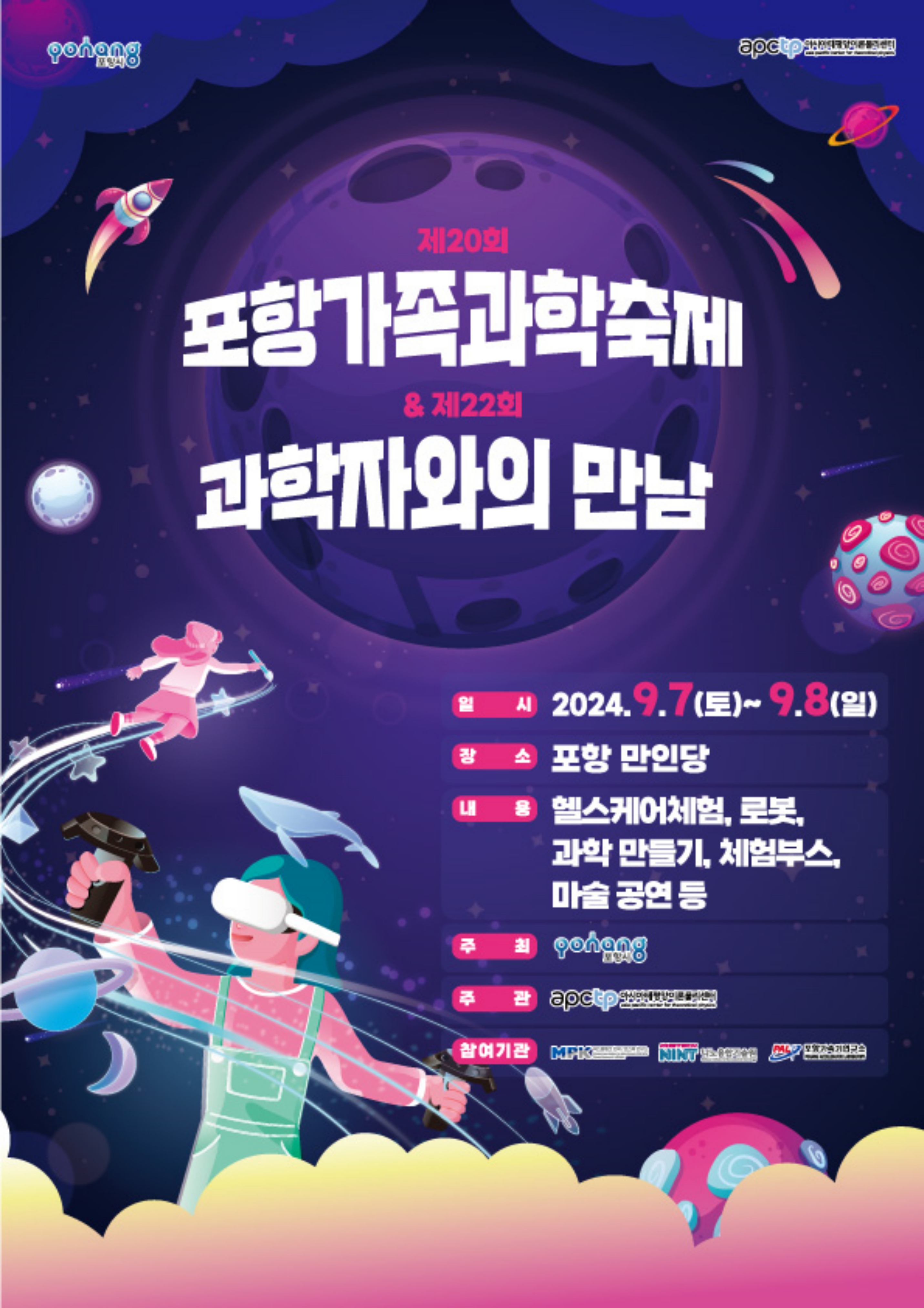 아시아태평양이론물리센터(이하 APCTP)가 오는 9월 7일(토)부터 8일(일)까지 제20회 포항가족과학축제와 제22회 과학자와의 만남 행사를 개최한다.