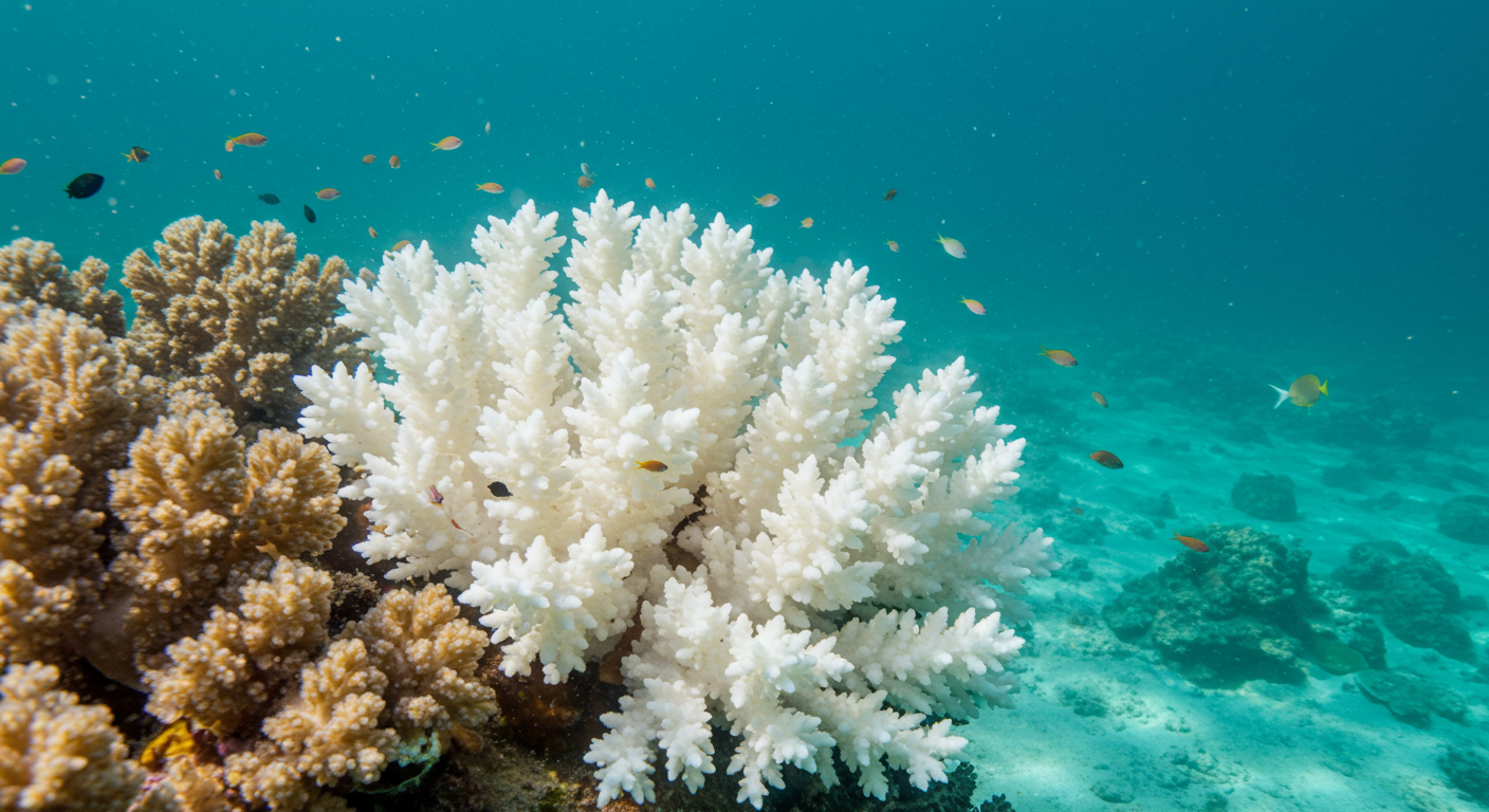 산호초 백화의 가장 큰 원인은 '기후 변화'로 인한 해수면 온도 상승입니다. 전 세계 해수면 온도는 2023년부터 기록적인 수준으로 치솟았으며, 이는 산호에게 극심한 열 스트레스를 주고 있습니다.