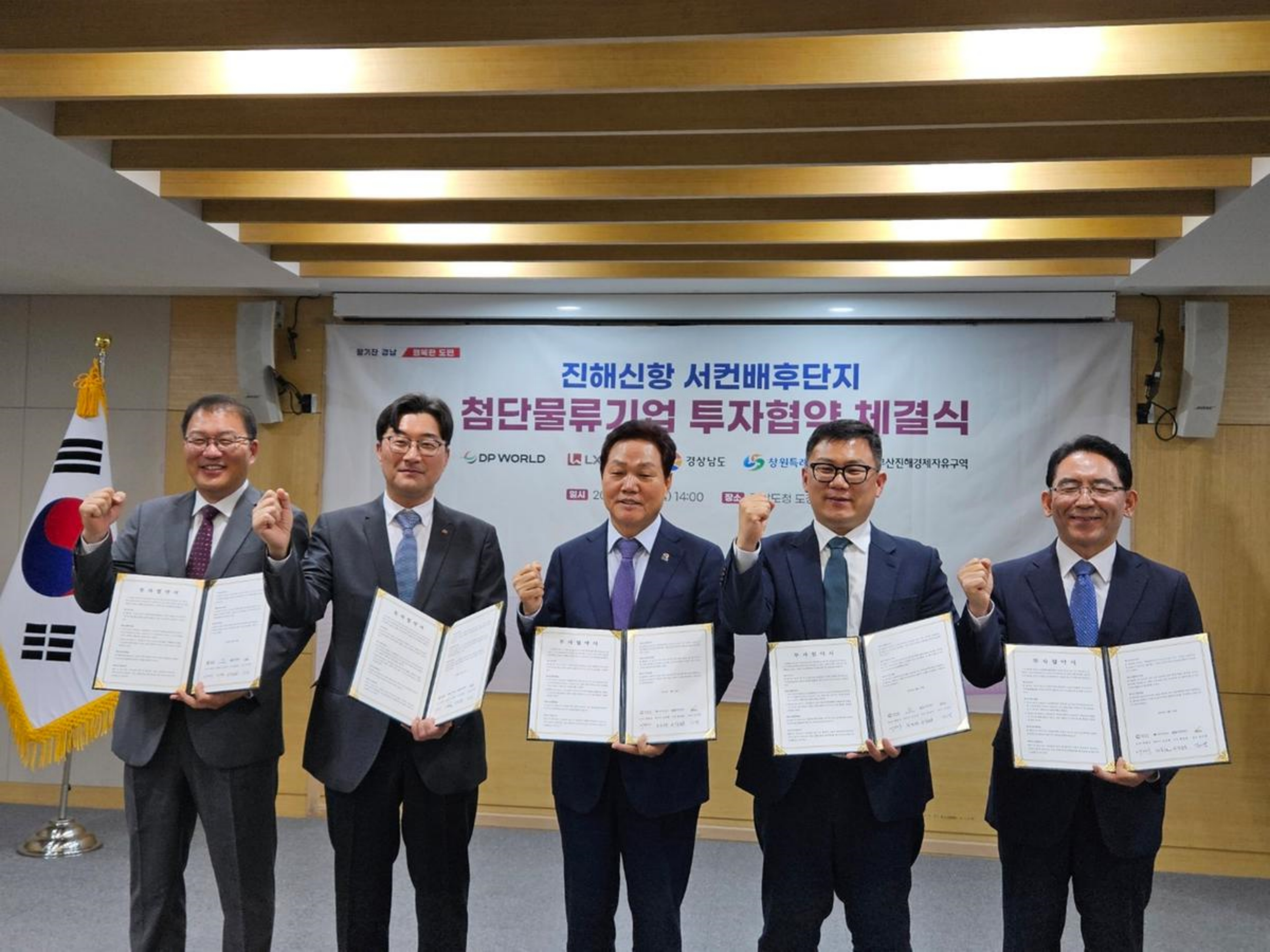 창원특례시는 22일 경남도청 도정회의실에서 첨단물류기업인 ㈜엘엑스판토스신항에코물류센터, 디피월드부산로지스틱스센터(주)와 총 1,572억 원을 투자하고 지역 인재 275명을 채용하는 투자협약을 체결했다.
