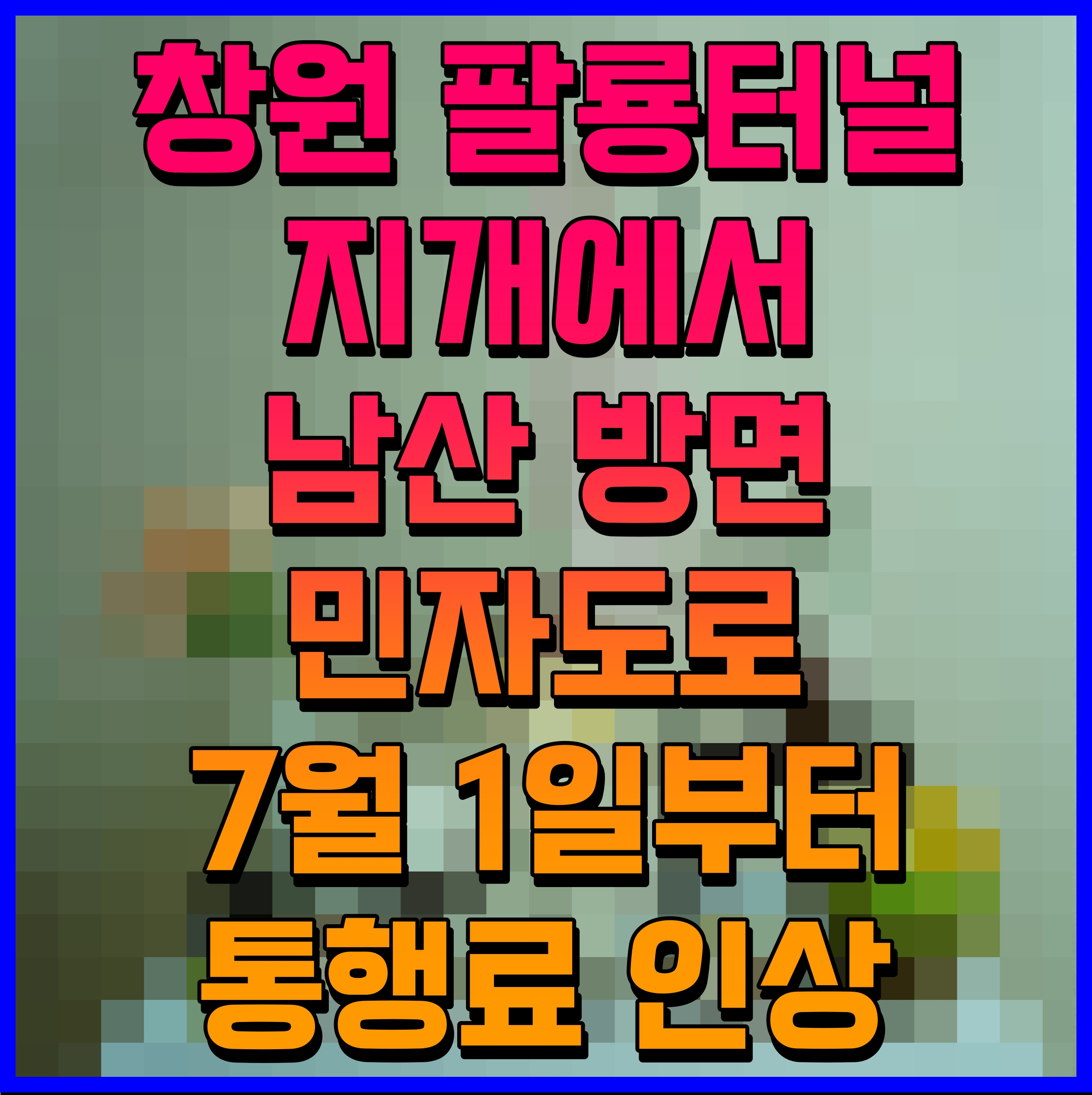 창원특례시는 팔룡터널과 지개~남산간 민자도로의 통행료를 2024년 7월 1일 00시부터 차종별 100~300원 인상한다고 밝혔다.