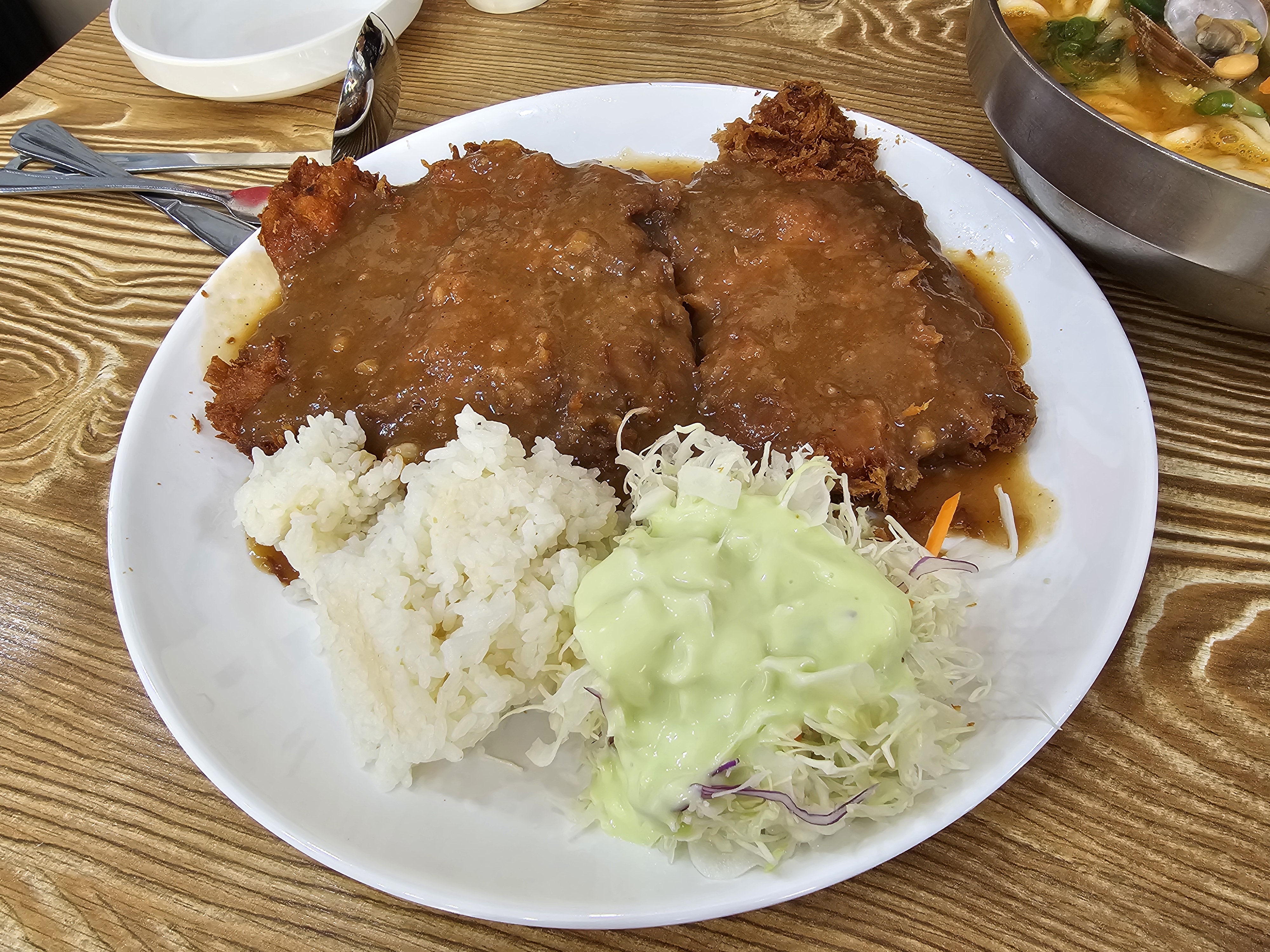 천안 신부동 장칼국수 그리고 수제돈까스 비주얼입니다. 어때요? 나쁘지 않죠?
