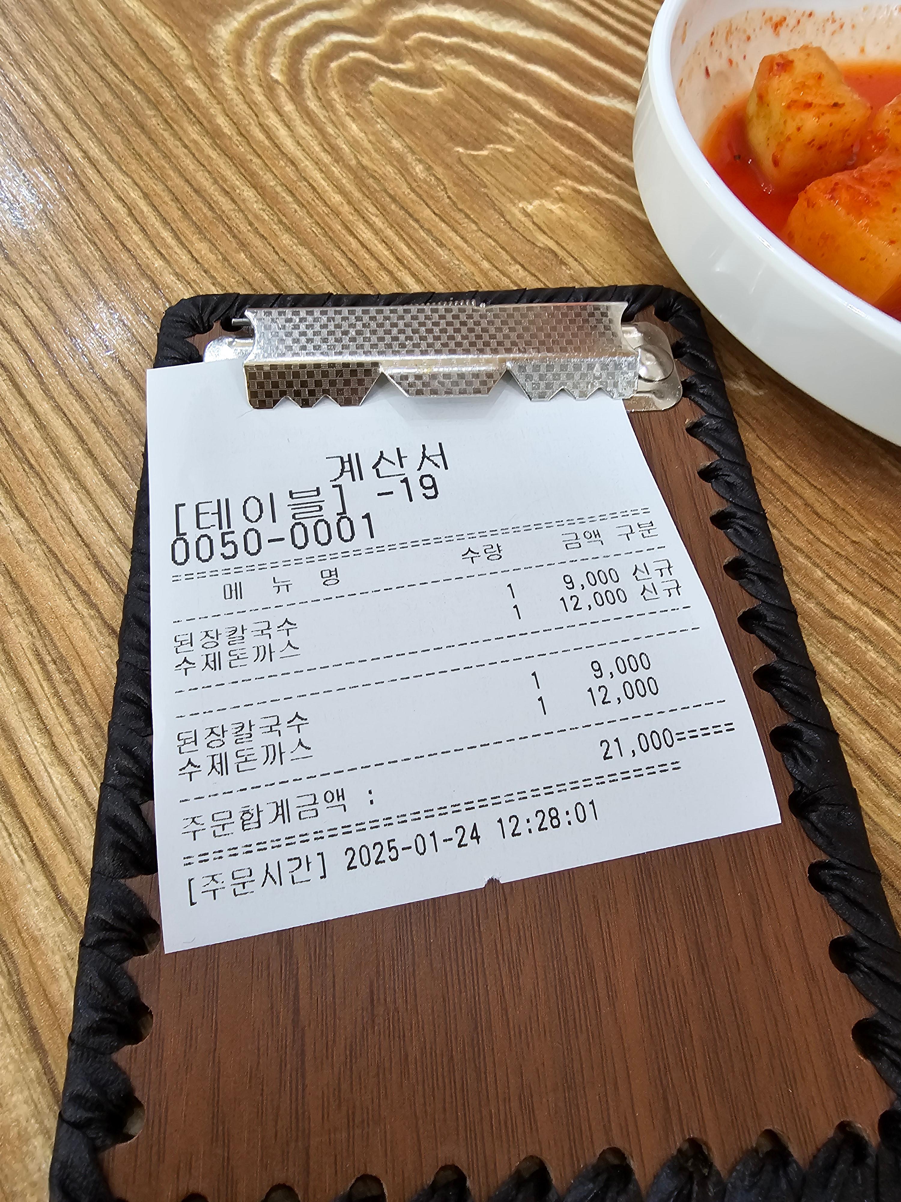 가격은 된장칼국수 9천 원 수제 돈까스 1만 2천 원입니다. 요즘 밥값이 1만 원으로 선택할 수 있는 게 몇 개 없을 만큼 물가가 많이 오르긴 했습니다. 월급은 사실 크게 오르지 않았고, 세금으로 엄청 떼어가는데 말이죠! 참...