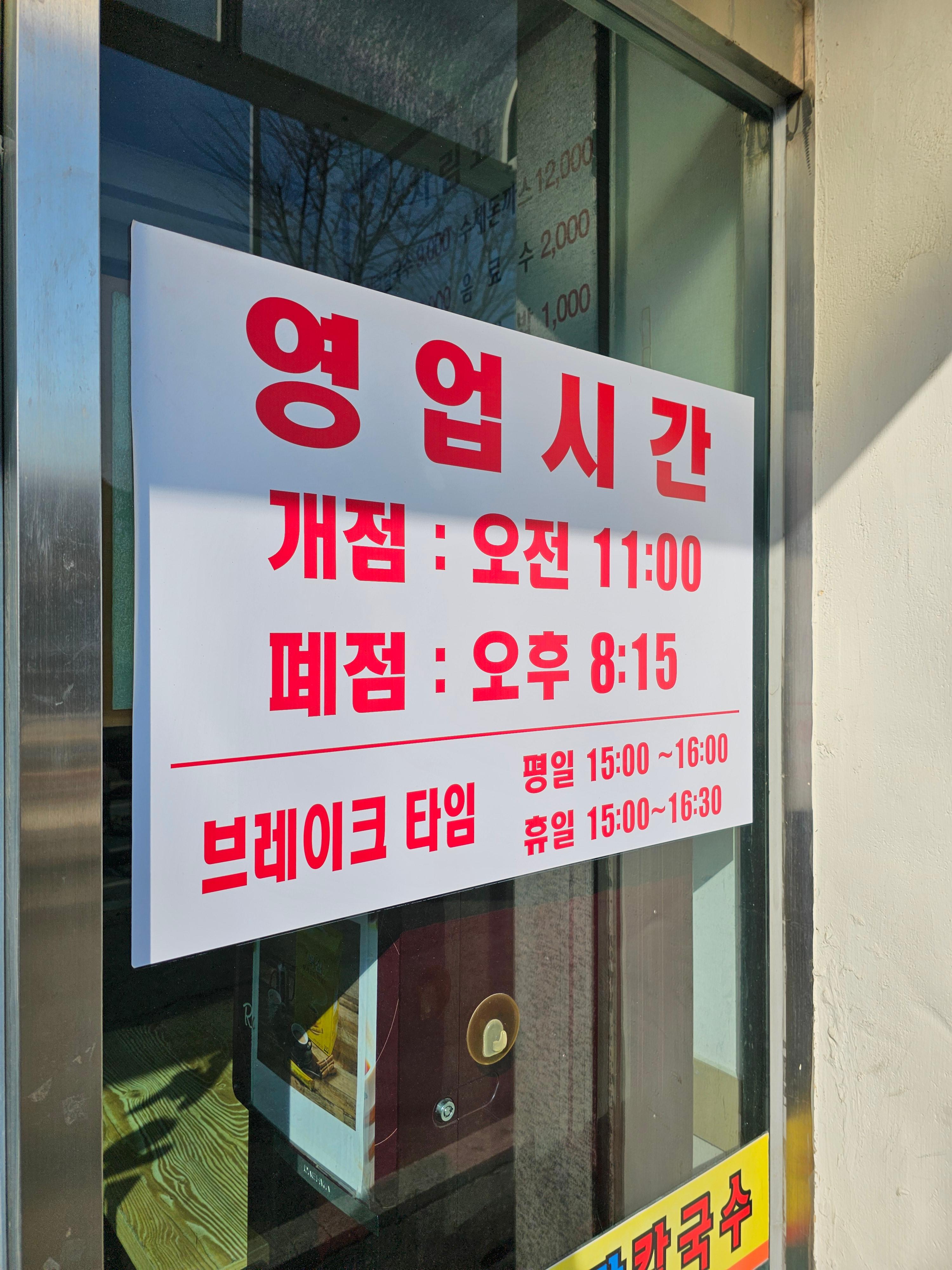 천안 신부동 장칼국수 영업시간은 오전 11시부터 오후 8시 15분까지입니다.