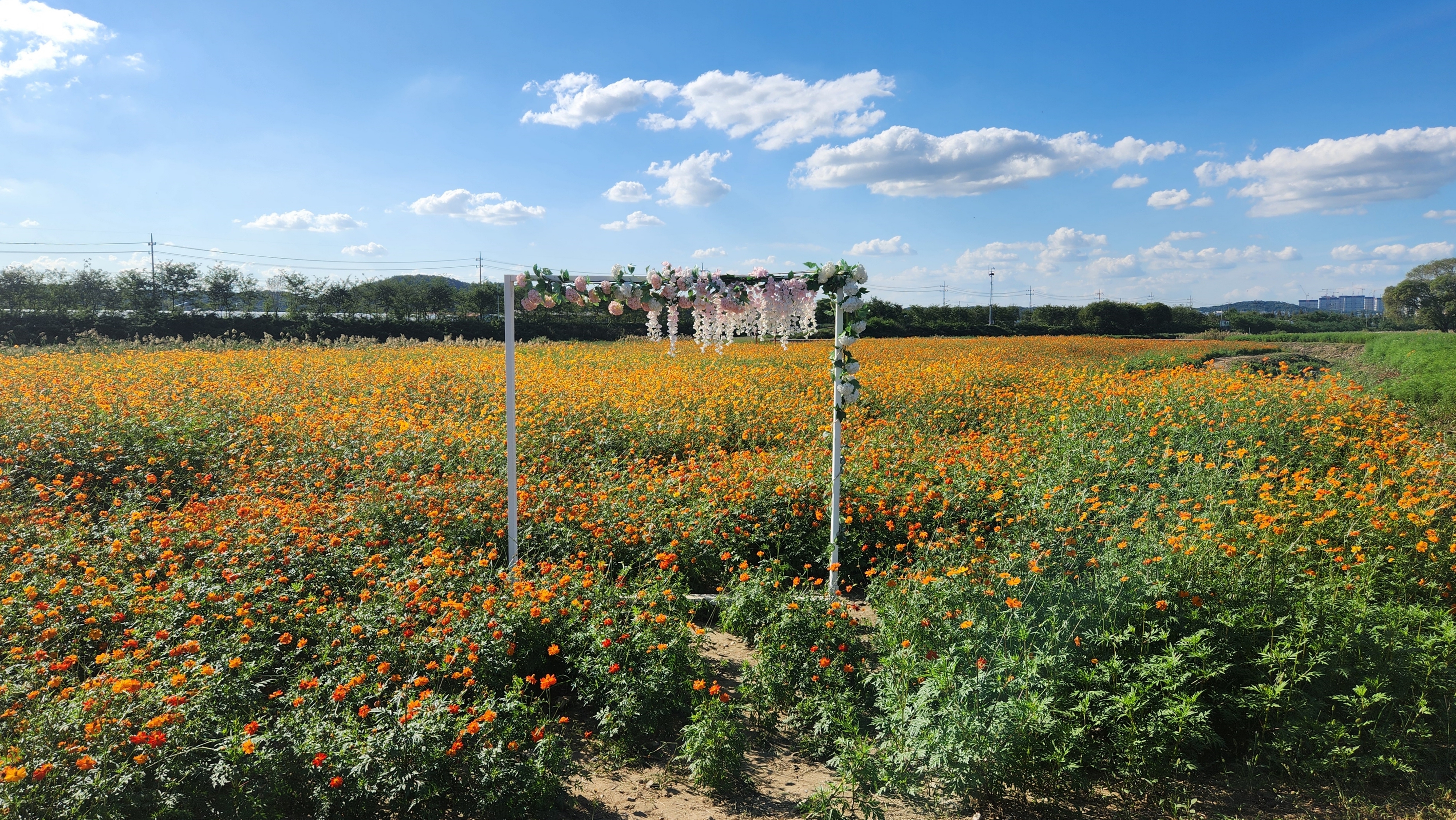 당초 10월 중순쯤 만개를 예상했으나, 이상 고온으로 코스모스가 조기 개화해 개방 일정을 앞당겼다.