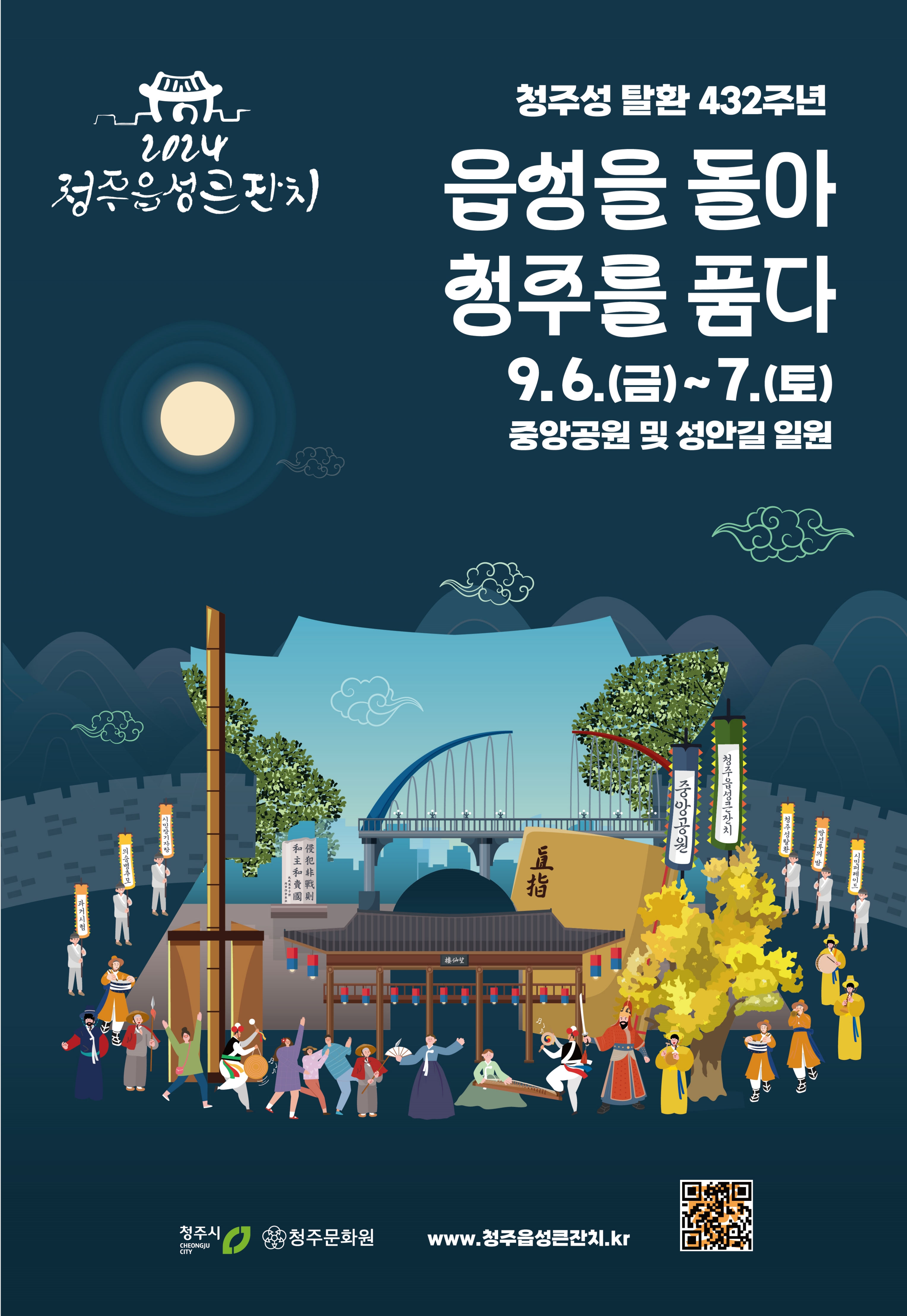 2024 청주읍성큰잔치가 읍성을 돌아, 청주를 품다라는 주제로 오는 6일부터 7일까지 이틀 동안 상당구 중앙공원 및 성안길 일원에서 개최된다.