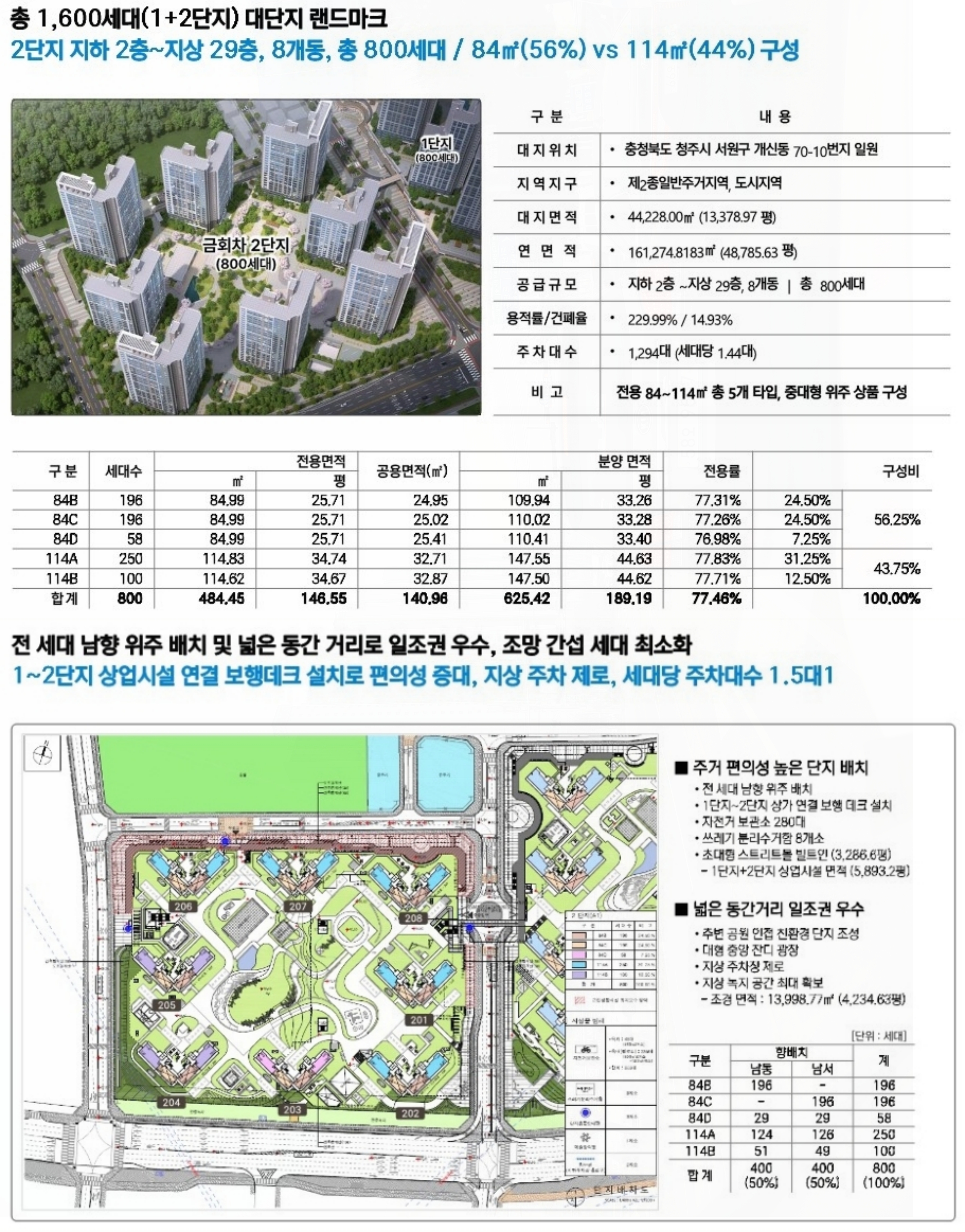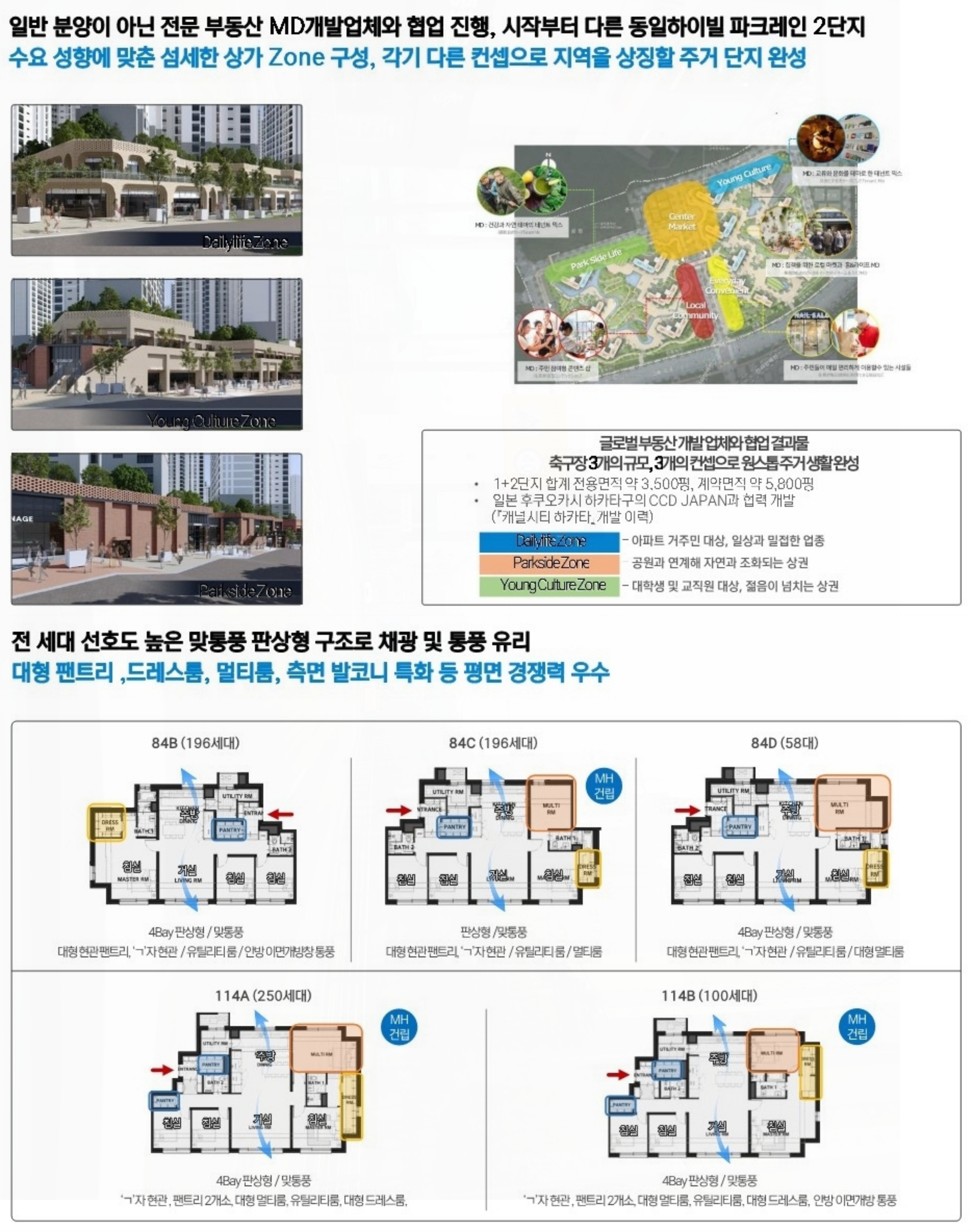 청주 동일하이빌 파크레인 2단지는 전용 84형과 114형으로 총 5가지 주택형을 소개하고 있답니다.