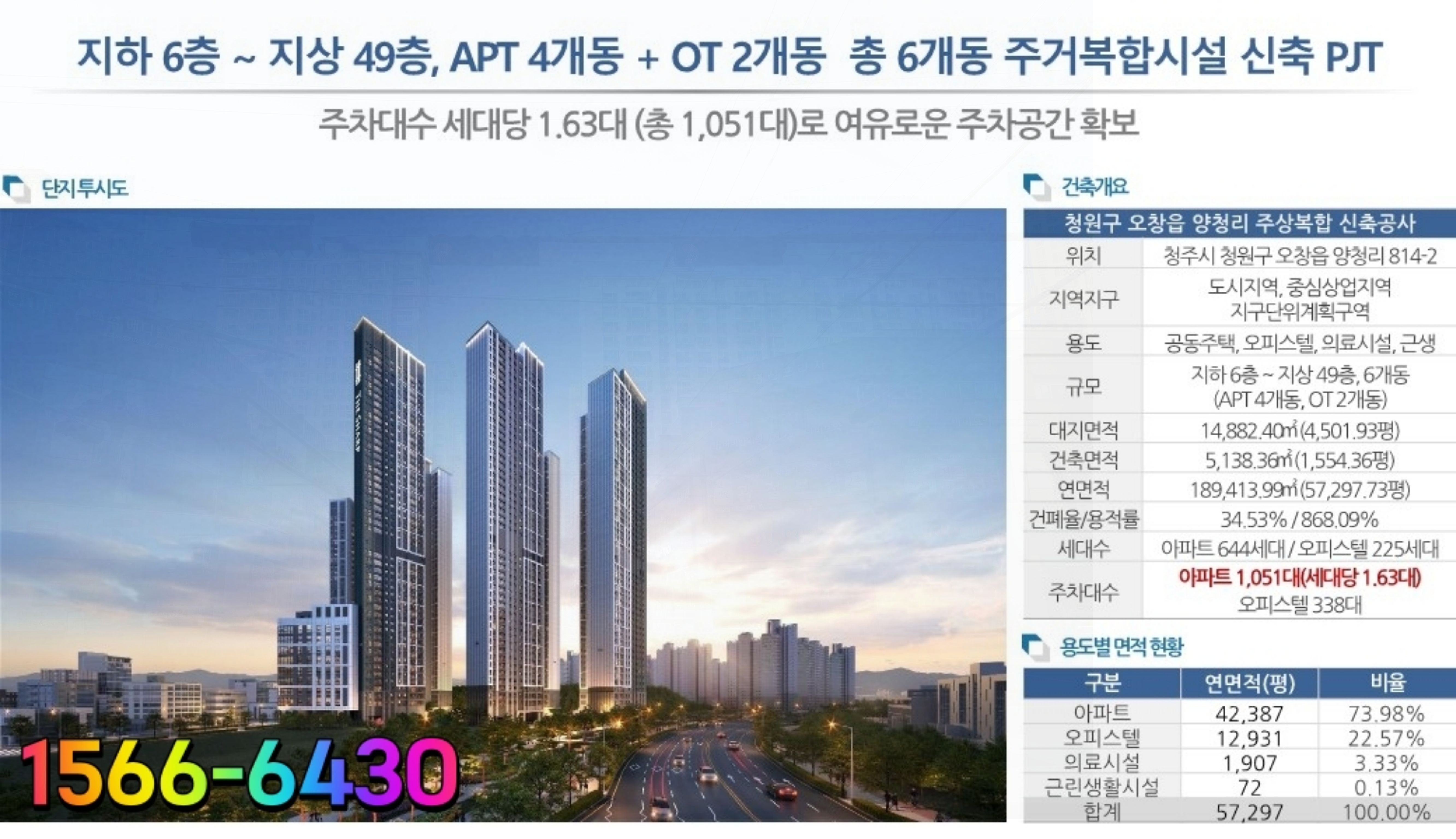 지하6층 ~ 지상 49층의 초고층으로 오창 내에서도 랜드마크 타워로 손색이 없을 만큼 무게가 실리고 있답니다.