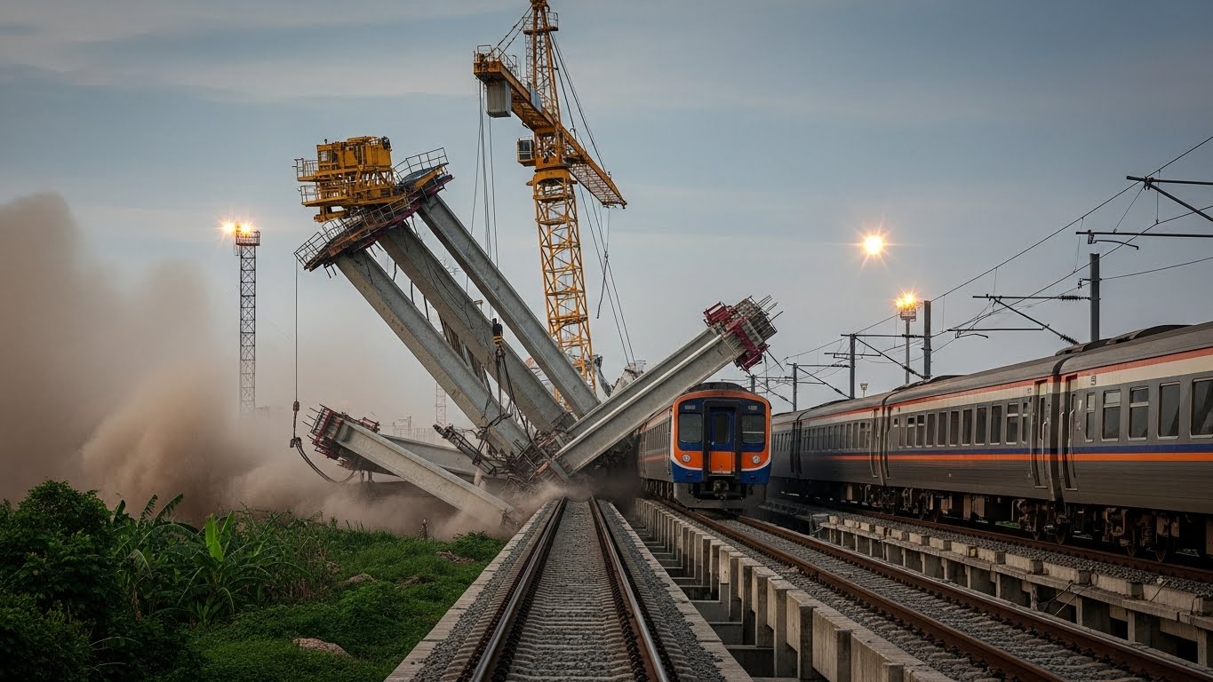 당시 고가철로 공사를 위해 사용되던 대형 크레인이 붕괴하여 공사장 아래 기존 철로로 떨어졌고, 마침 방콕에서 동부 우본라차타니주로 향하던 열차의 객차 2량을 그대로 덮쳤습니다.