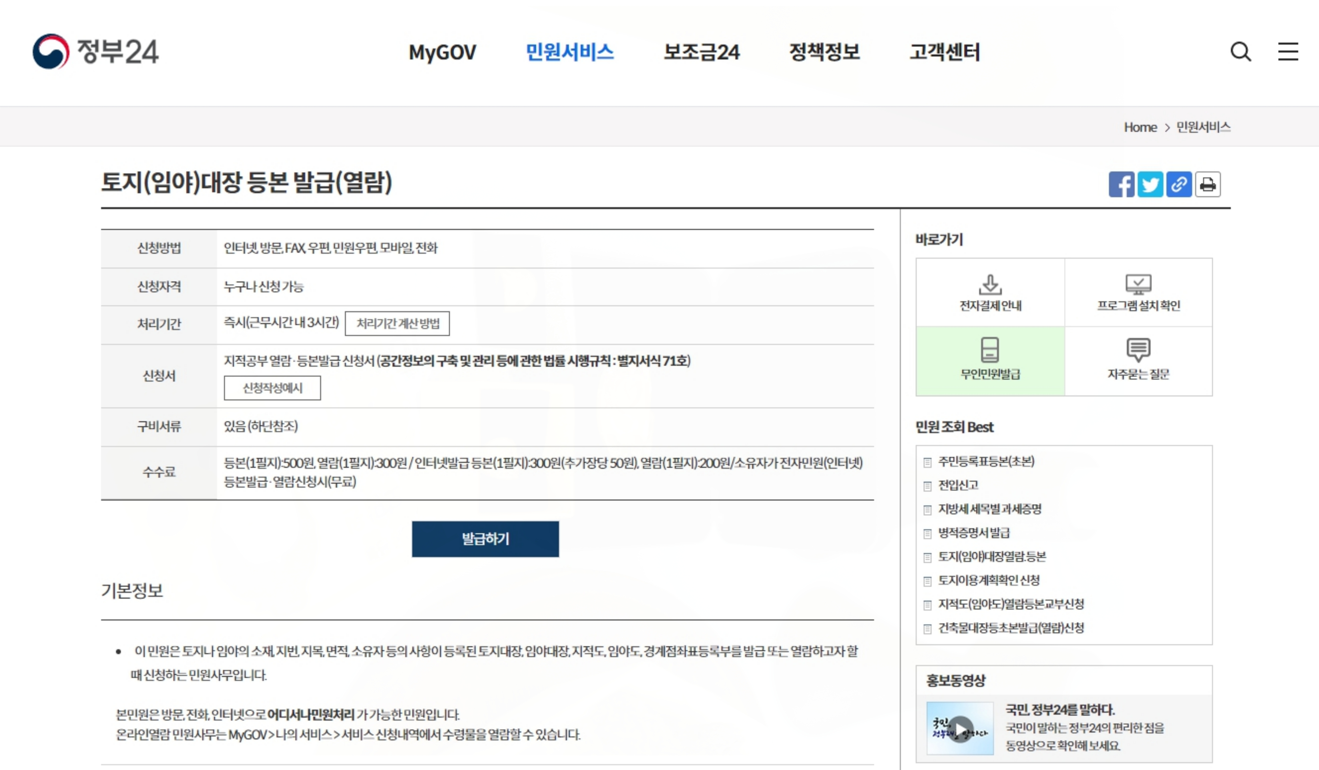 토지대장 외 다른 여러 가지 서류들의 열람 및 발급이 가능하기 때문에 서류 발급에 도움이 됩니다.