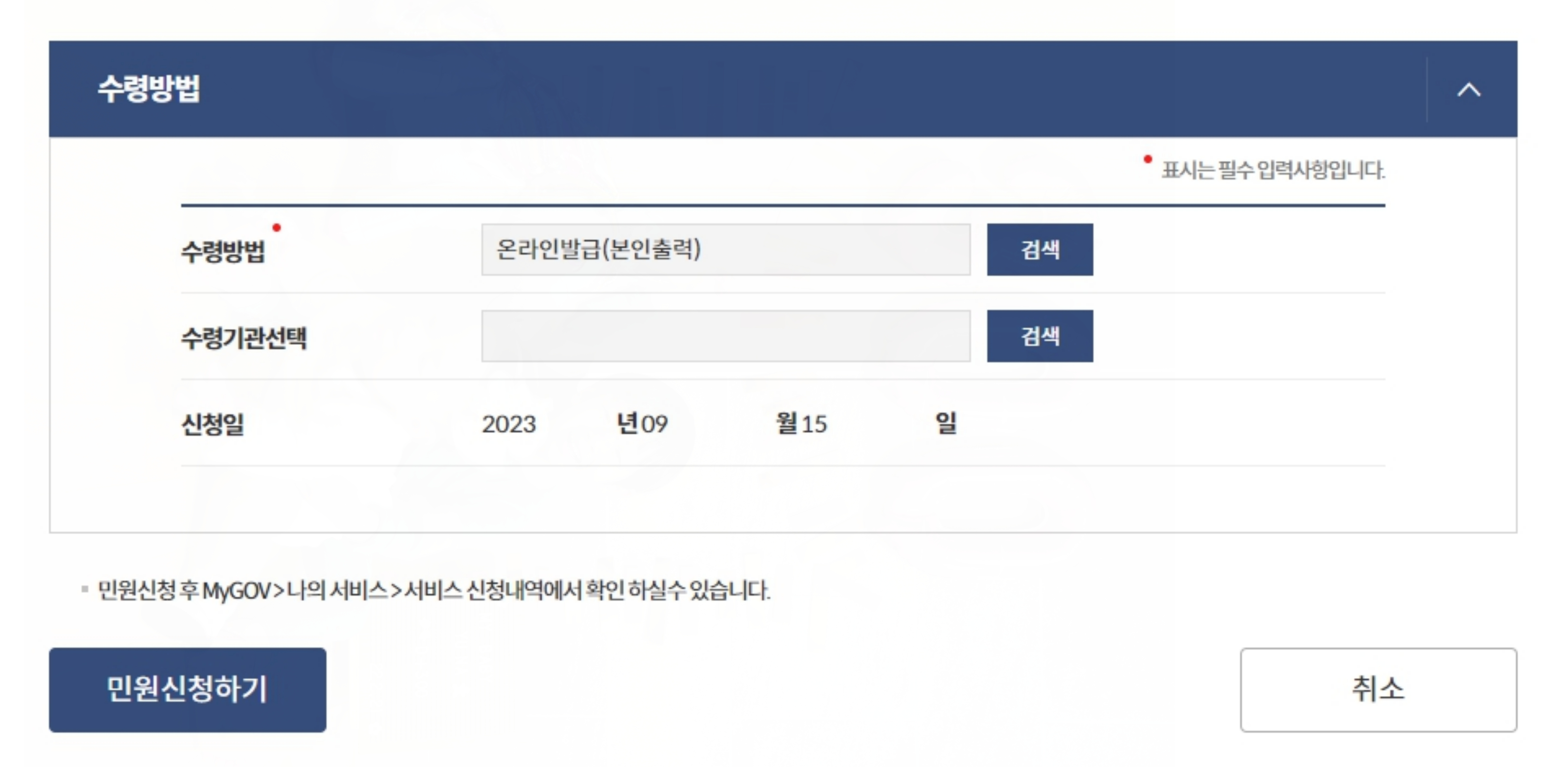 수령방법까지 확인한다음 민원신청하기를 누르시고, 최종 확인 후 서류를 열람 및 발급 받으시면 됩니다.