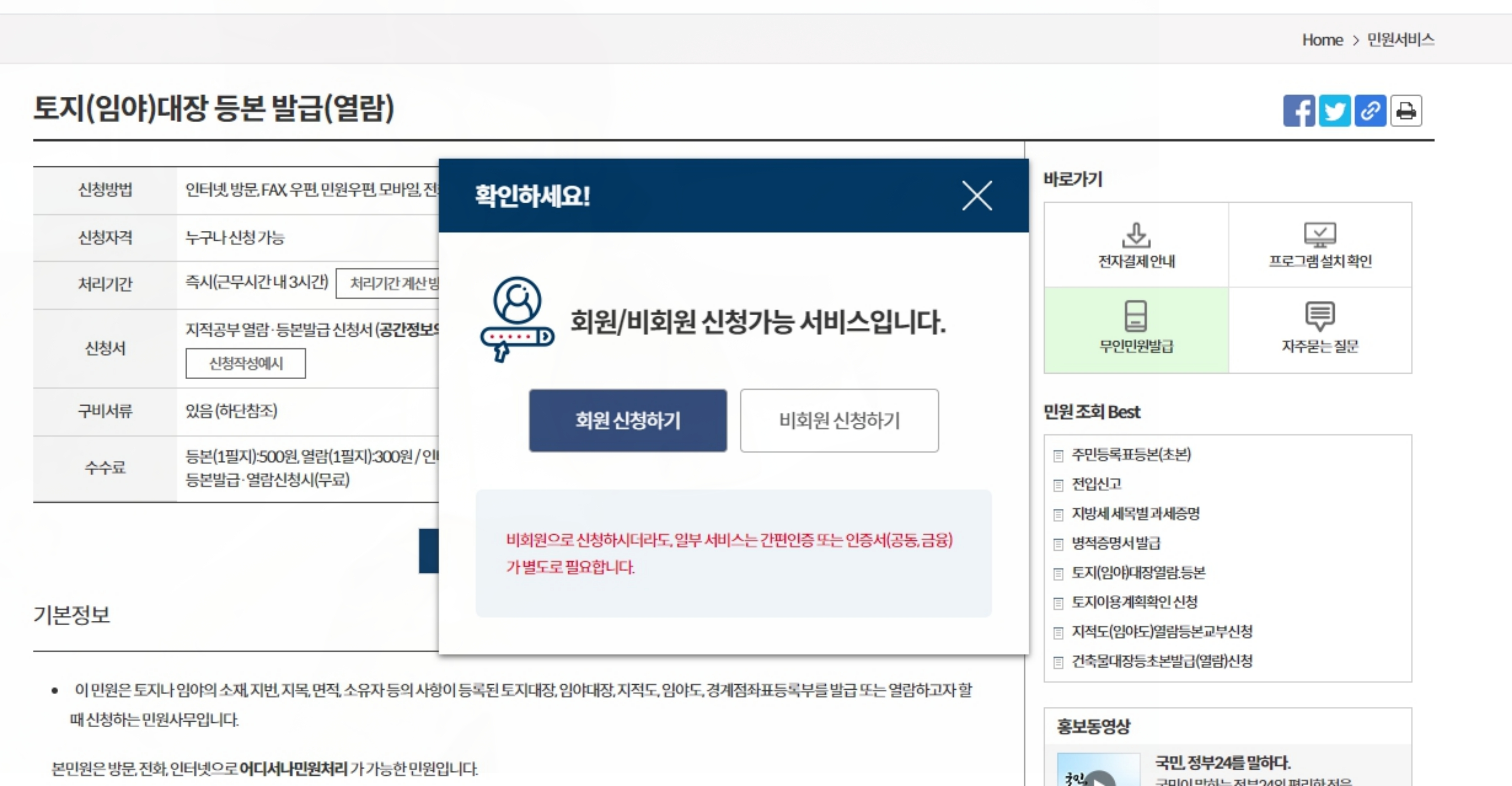정부 24 사이트를 자주 이용하신다면 회원가입 후 이용하시면 조금이라도 시간을 단축시키실 수 있습니다.