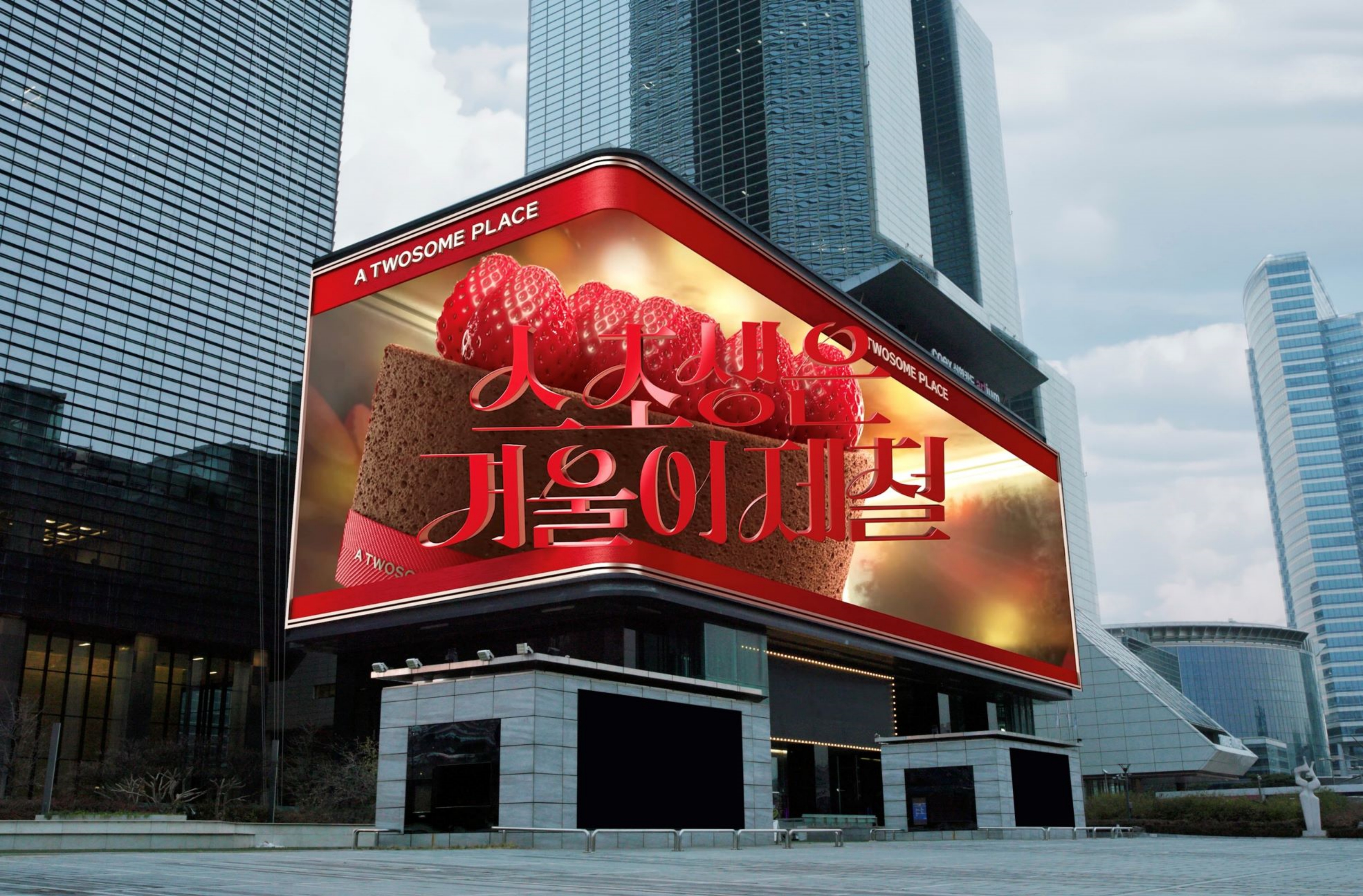 프리미엄 디저트 카페 투썸플레이스가 겨울 시즌 대표 케이크 스초생을 주제로 코엑스 케이팝스퀘어에서 초대형 3D 광고를 선보인다고 밝혔다.