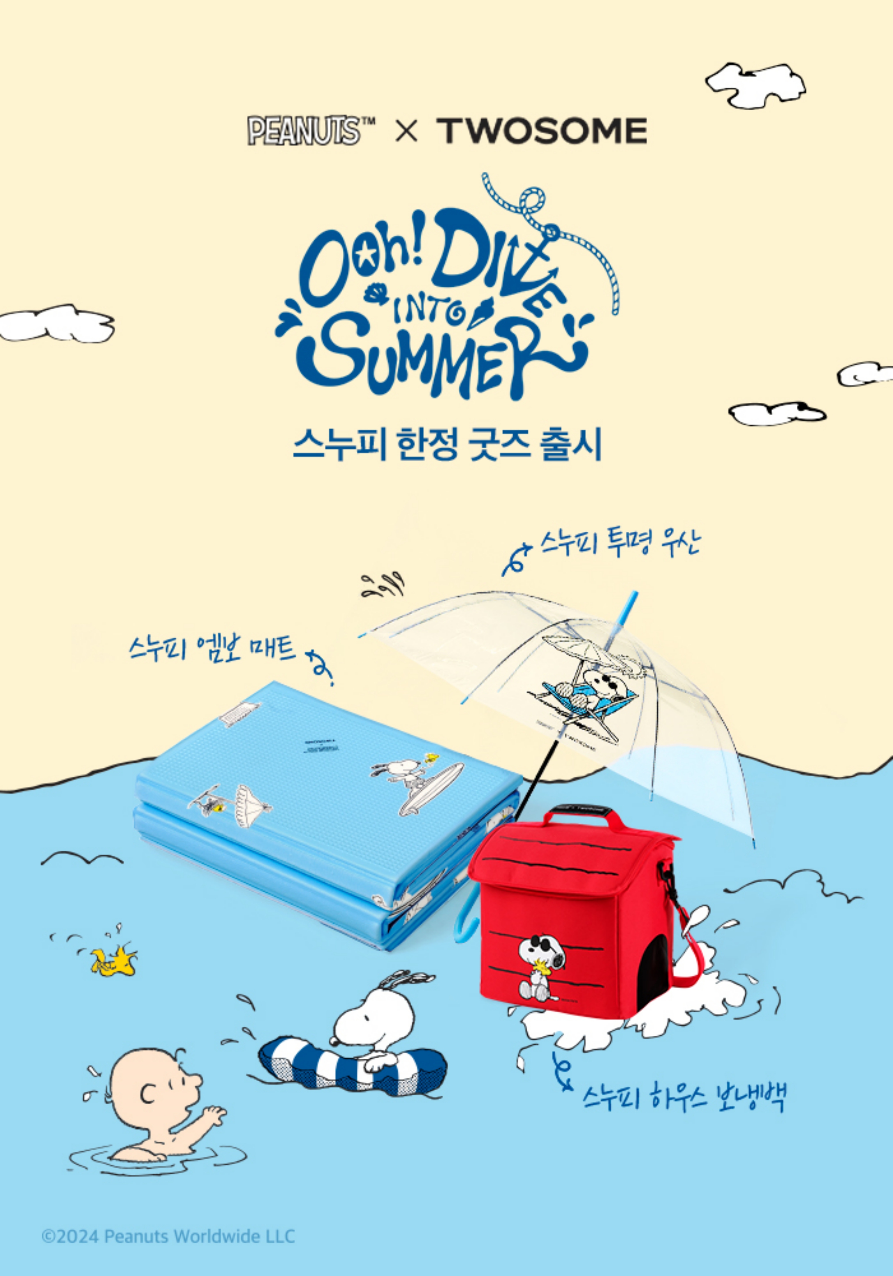 투썸플레이스는 이번 시즌 여름으로 다이빙! (Ooh! Dive into Summer)을 테마로 시원한 여름 휴가를 즐기는 피너츠 캐릭터들의 모습을 담은 굿즈 3종을 출시한다.