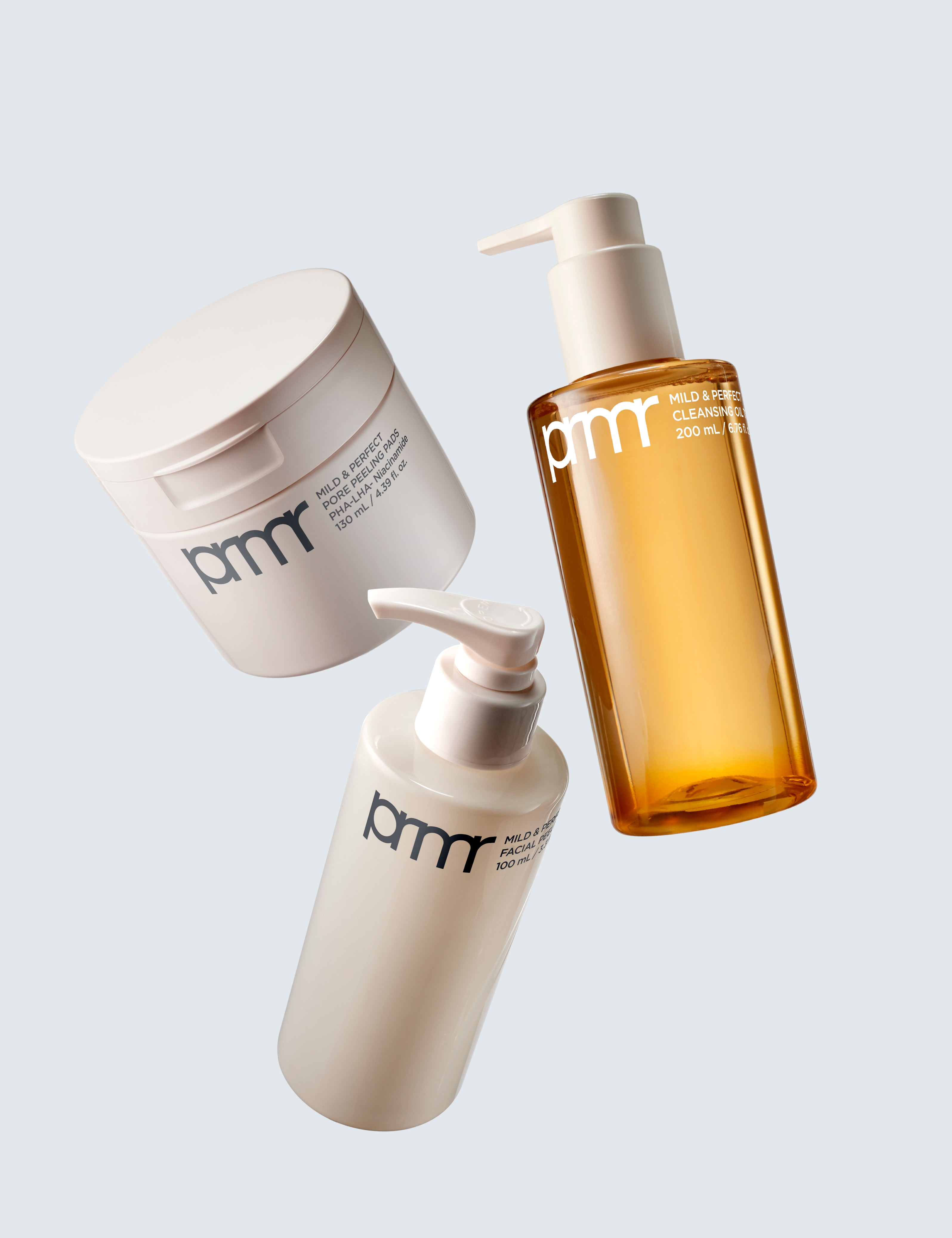 민감해지고 약해진 피부에 부드럽지만 완벽한 효능을 선사하는 마일드 앤 퍼펙트 라인은 리뉴얼 상품인 오일 투 폼 클렌저와 페이셜 필링 그리고 신제품 포어 필링 패드로 구성했다.
