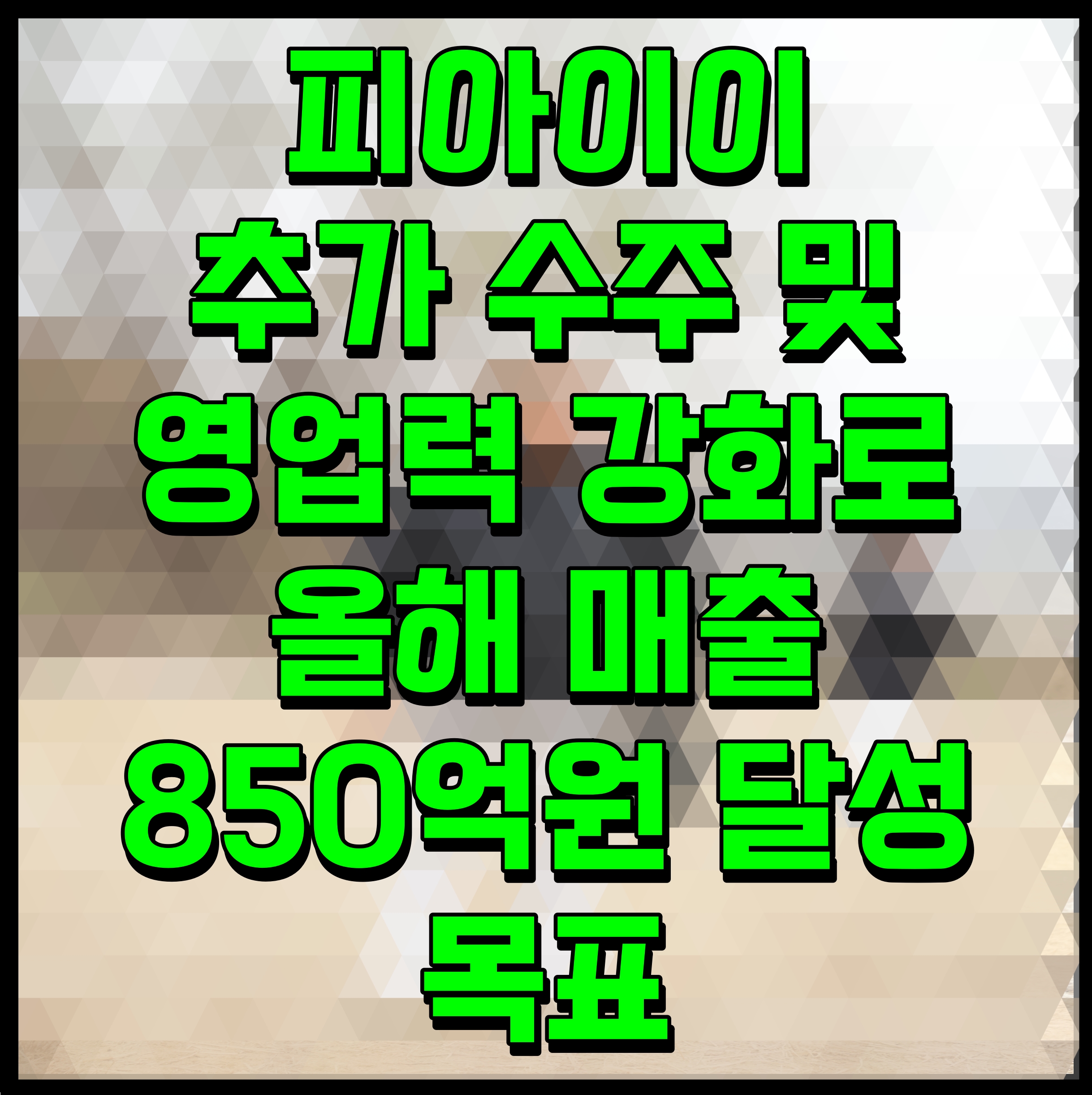 피아이이 추가 수주 및 영업력 강화로 올해 매출 850억원 달성 목표