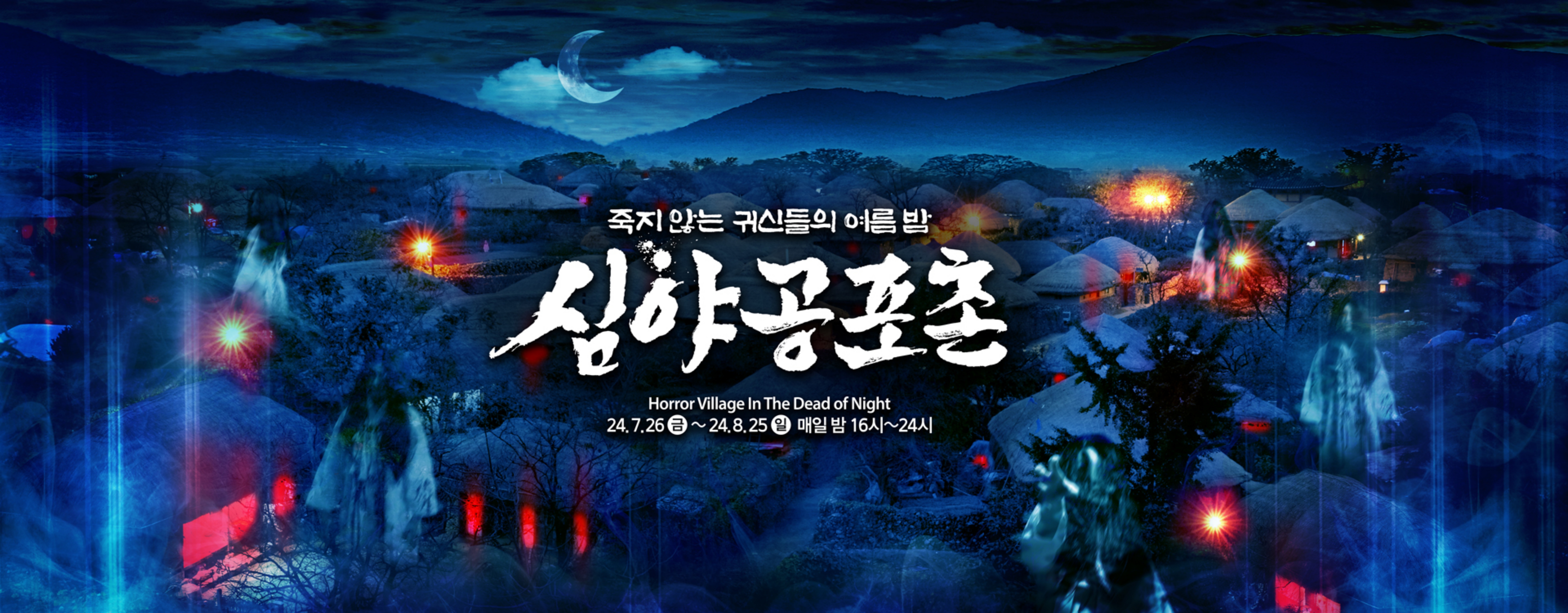 K-귀신이 가득한 조선시대 마을로 탈바꿈한 심야공포촌 축제는 내달 8월 25일까지 진행되며, 매일 밤 24시까지 운영한다.