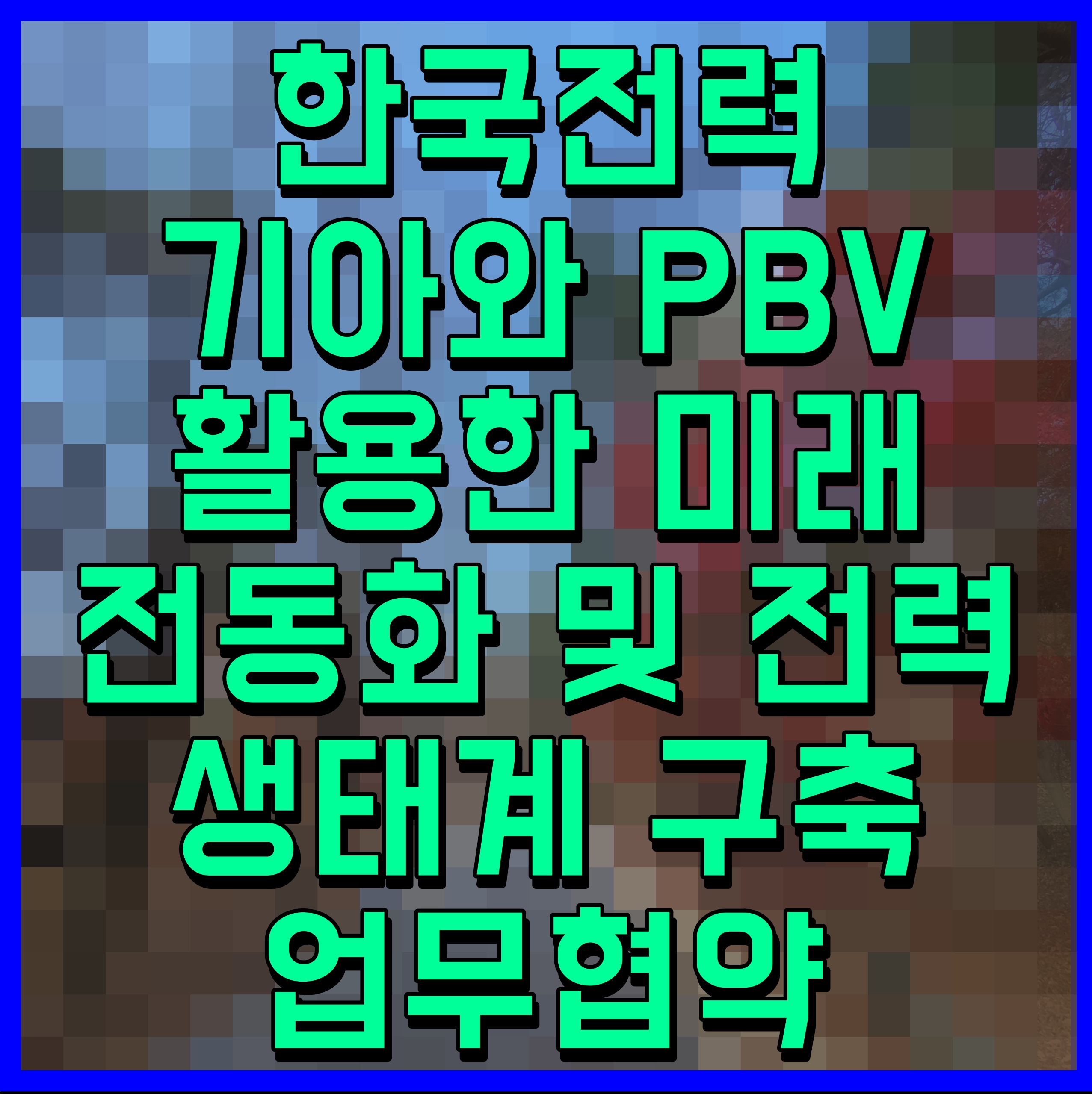 한국전력은 10월 23일(수) 서울 Kia 360에서 기아와 함께 PBV (특수한 목적을 수행하기 위해 설계 및 제작부터 운영에 이르기까지 그 목적을 달성하는 것에 충실하도록 고안된 맞춤형 교통수단)를 활용한 미래 전동화 및 전력 생태계 구축을 위한 업무협약을 체결했다.