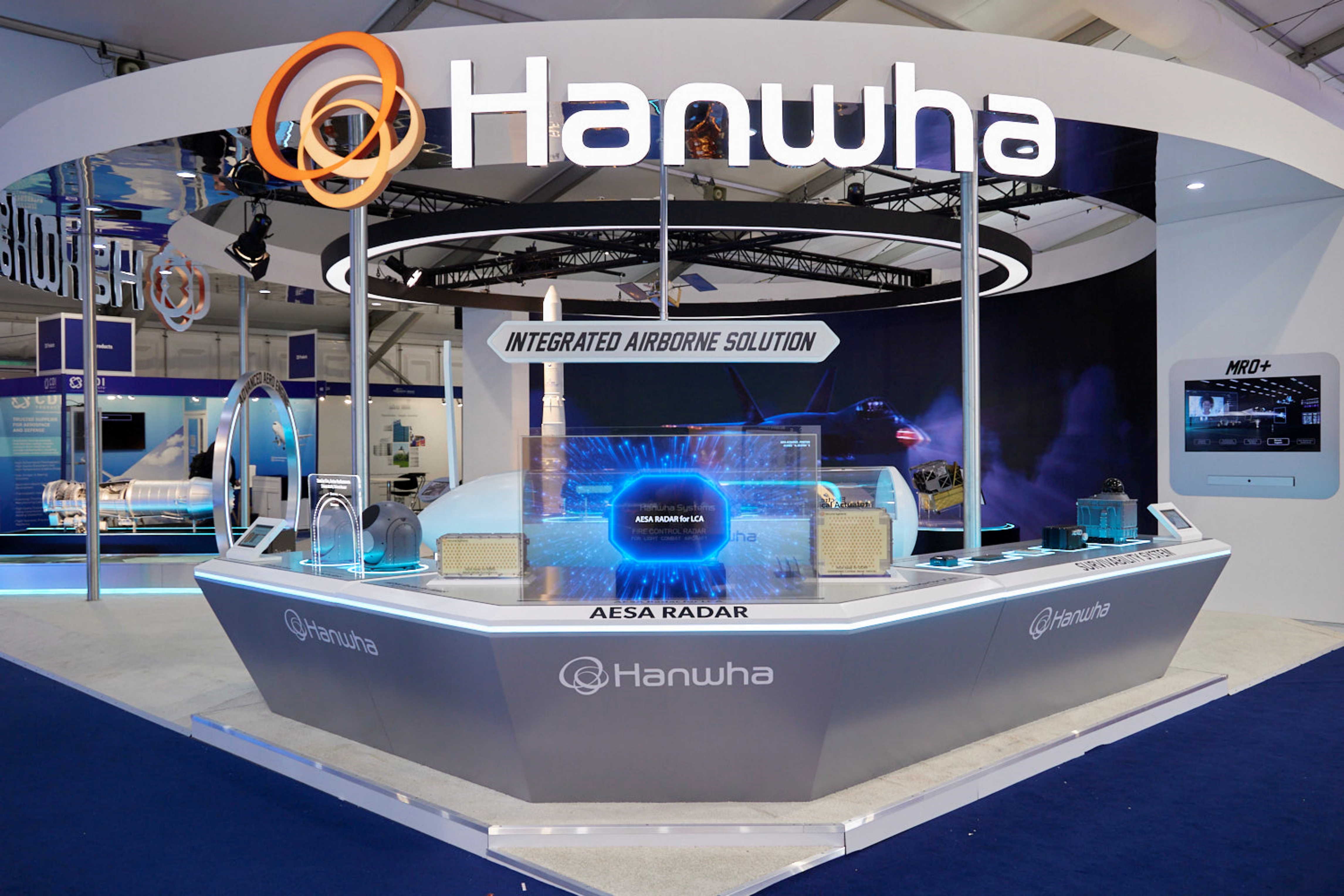 대한민국 최초의 전투기에 탑재될 AESA 레이다를 개발·공급하고 있는 한화시스템은 이번 전시에서 경공격기, 무인기, 소형 항공기 등 각 항공기 특성에 맞는 다양한 AESA 레이다를 선보인다.
