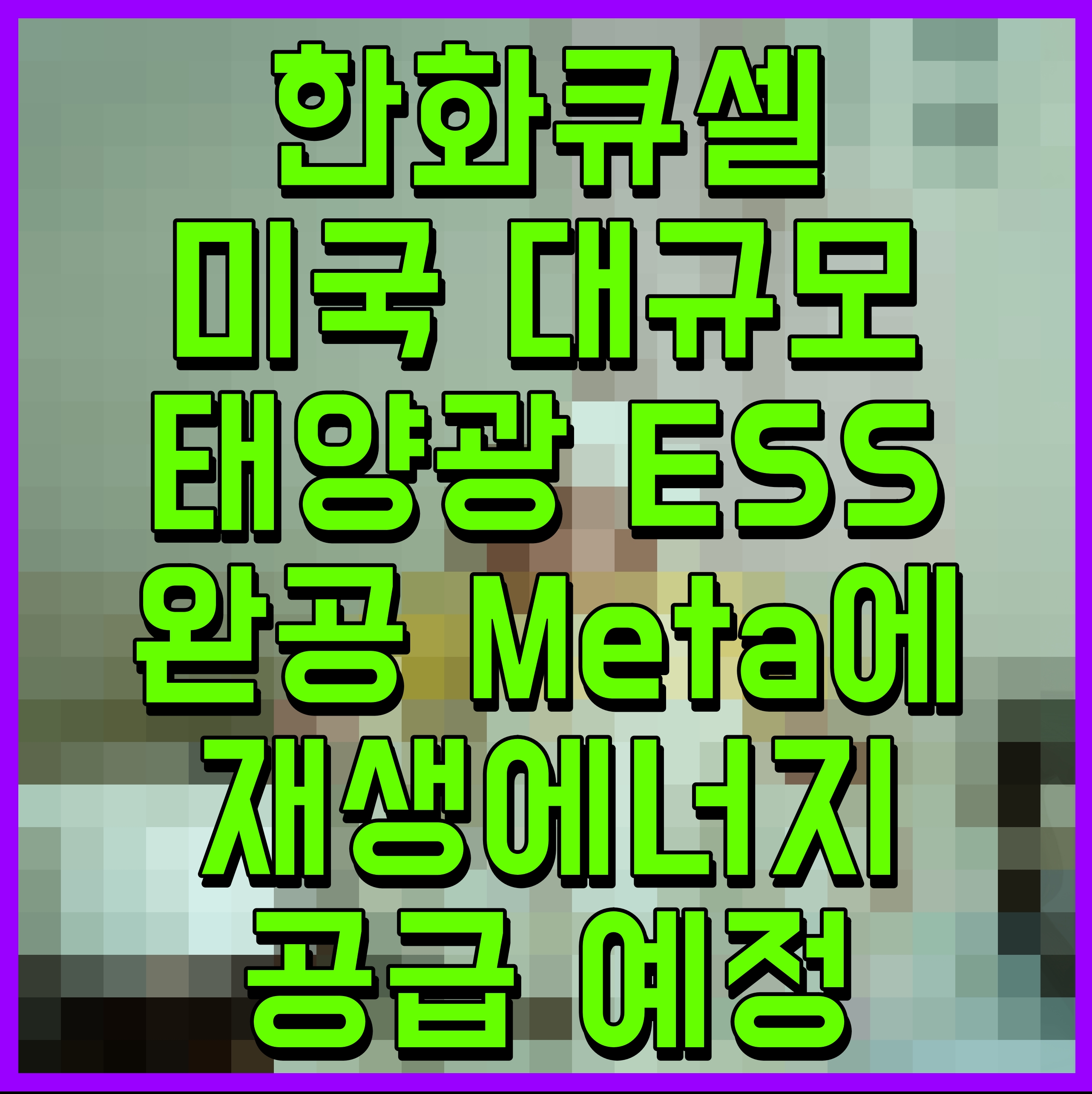 한화큐셀 미국 대규모 태양광 ESS 완공 Meta에 재생에너지 공급 예정