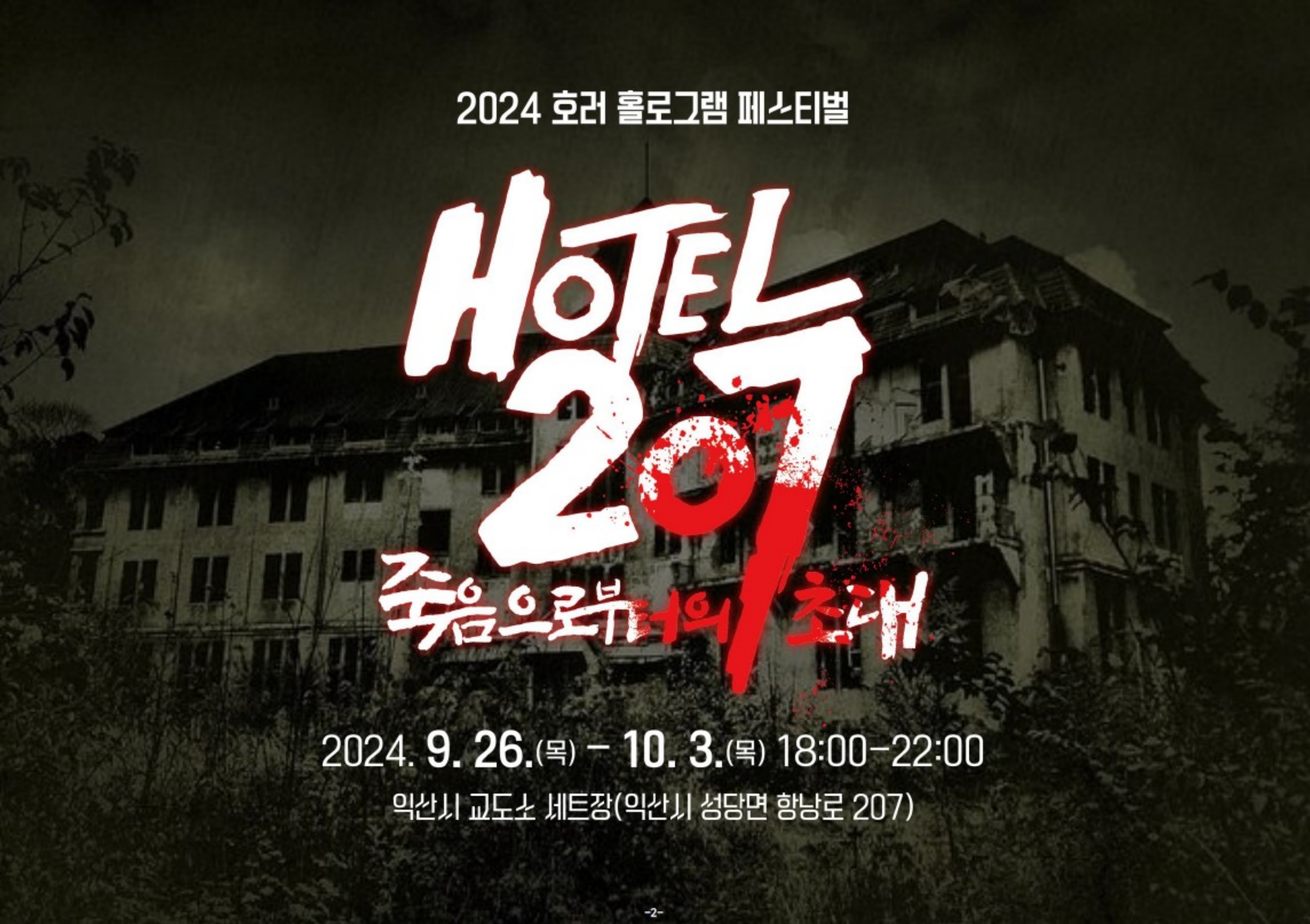 익산시는 오는 9월 26일부터 10월 3일까지 2024 호러 홀로그램 페스티벌을 개최한다고 19일 밝혔다.
