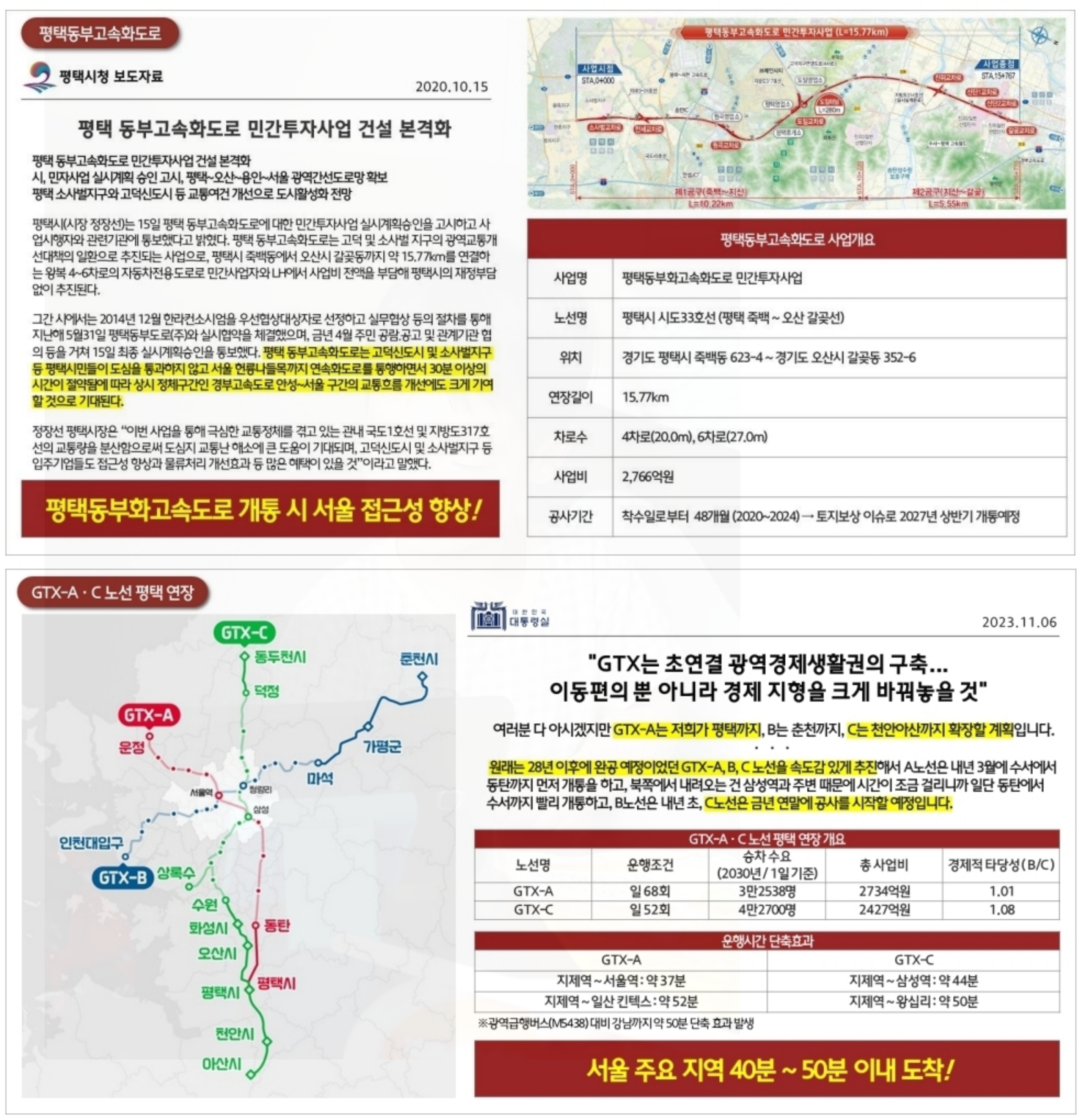 경부고속도로, 평택제천고속도로 인접: 경부고속도로, 평택제천고속도로, 동부고속화도로(공사 중)와 인접하여 수도권 및 전국 각지로의 이동이 용이합니다.
