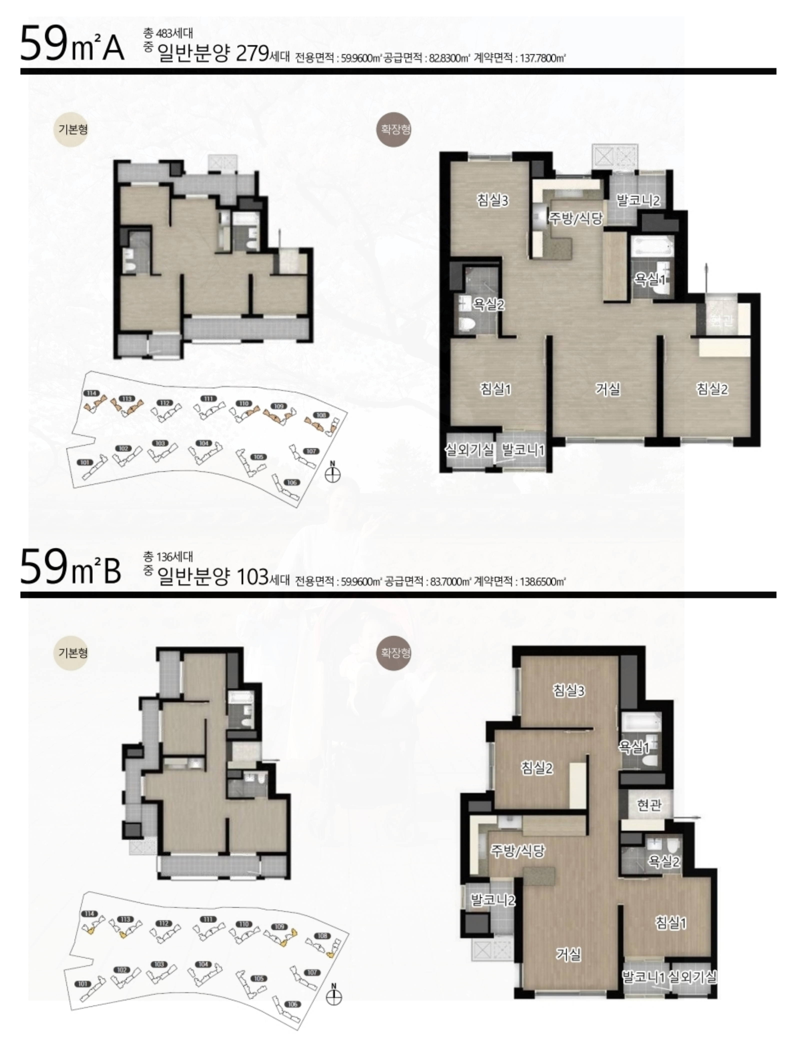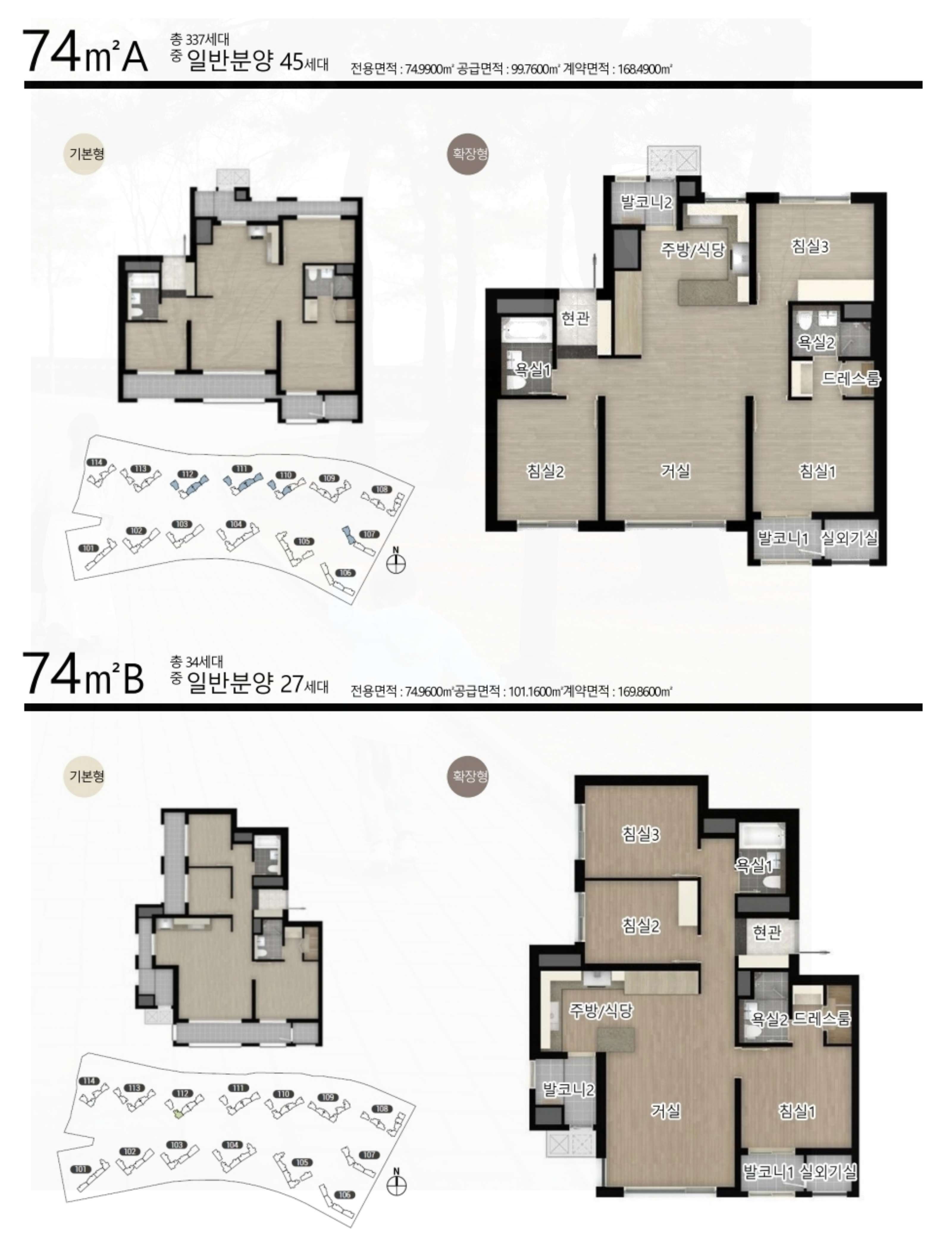 특히, 평택시의 12인 가구 비중이 높은 점을 고려하여 실수요층이 선호하는 59㎡, 74㎡, 84㎡ 타입이 중심을 이루고 있습니다.