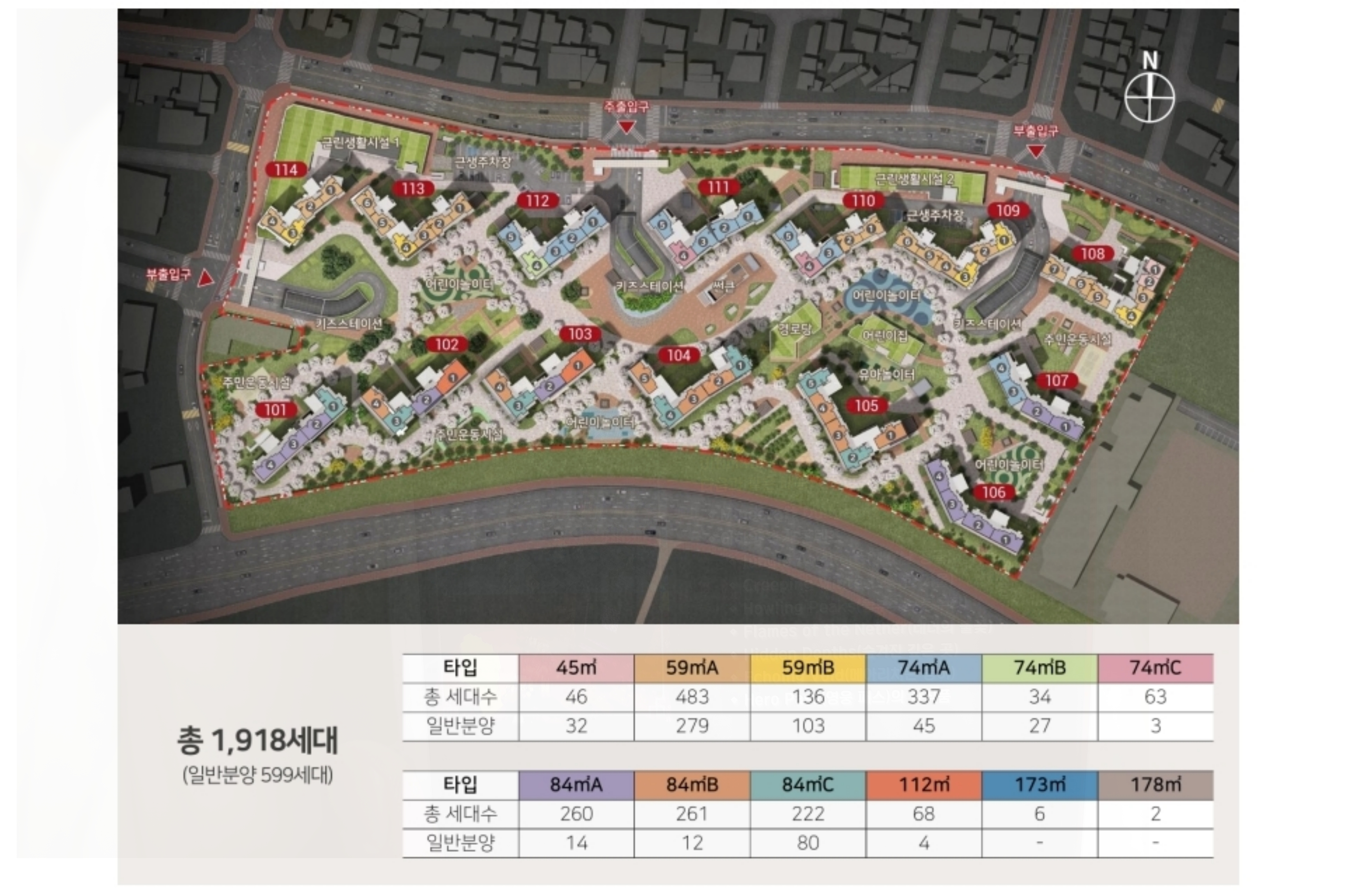 다양한 평형 구성: 전용면적 45㎡부터 178㎡까지 다양한 평형을 제공하여 1~2인 가구부터 대규모 가족 단위까지 다양한 수요를 충족시킵니다.