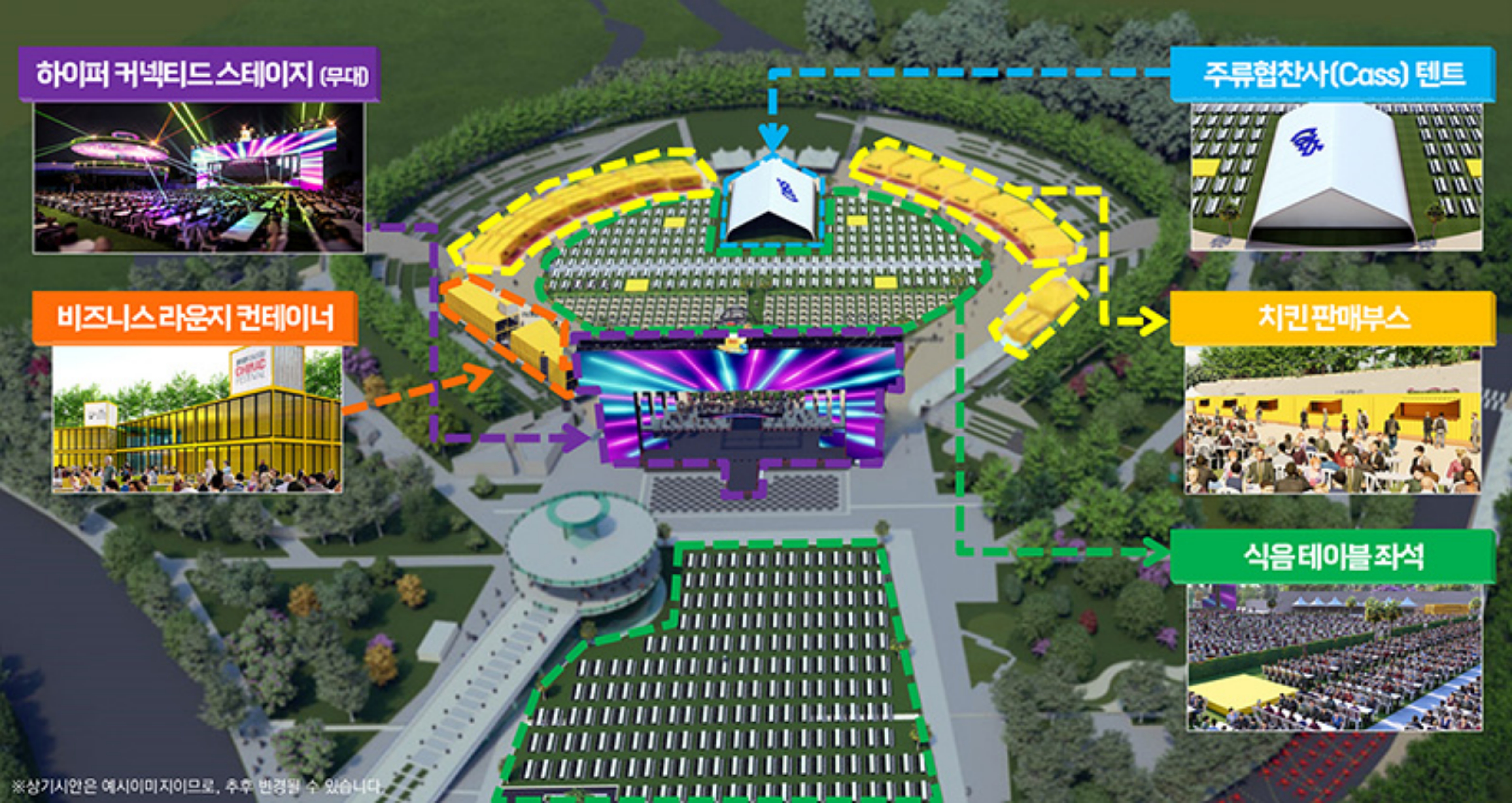 또한 잔디광장 전면부에 쏠린 무대 위치도 중앙으로 옮겨 잔디광장과 피크닉 광장 양쪽에서 축제를 즐길 수 있도록 개방형 스테이지로 무대를 구성해 공간 연결성을 확보하고 어디서든 무대를 즐길 수 있도록 만든다.