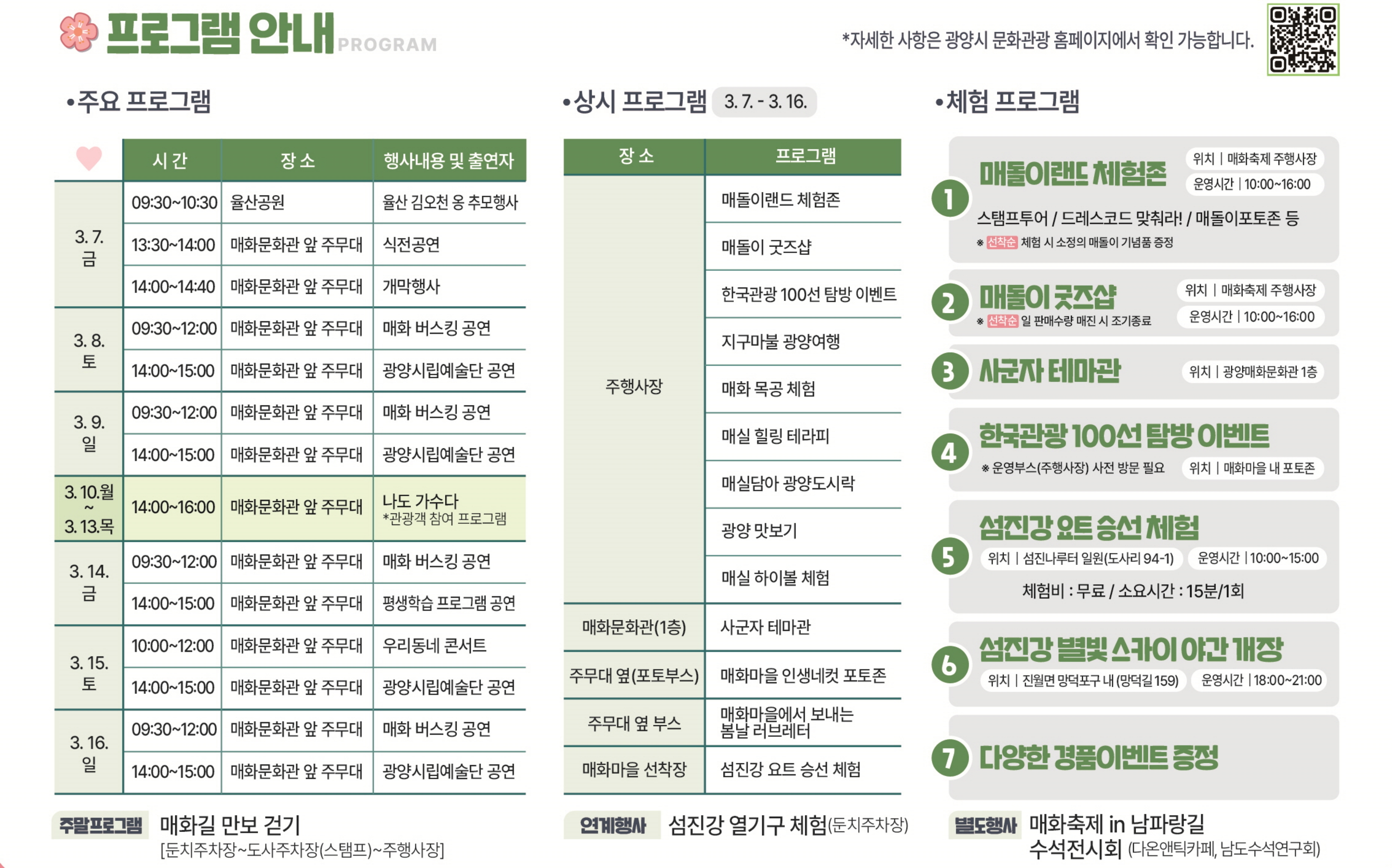 올해 광양매화축제에서는 다양한 프로그램이 준비되어 있습니다.