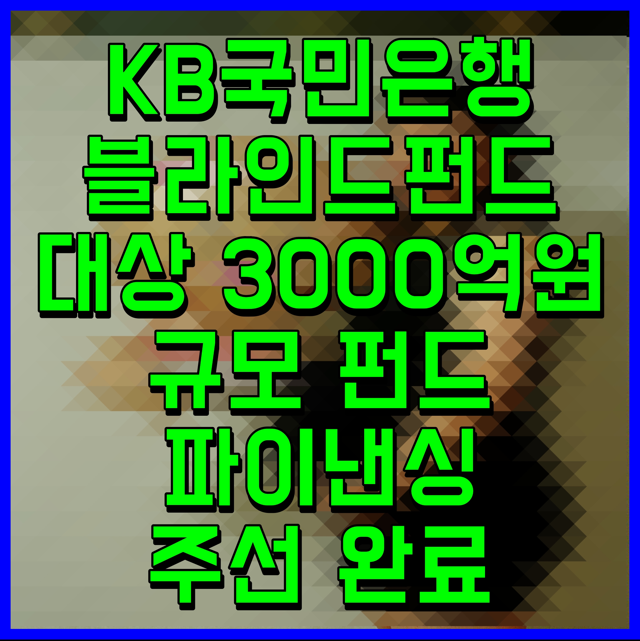 KB국민은행 블라인드펀드 대상 3000억원 규모 펀드파이낸싱 주선 완료