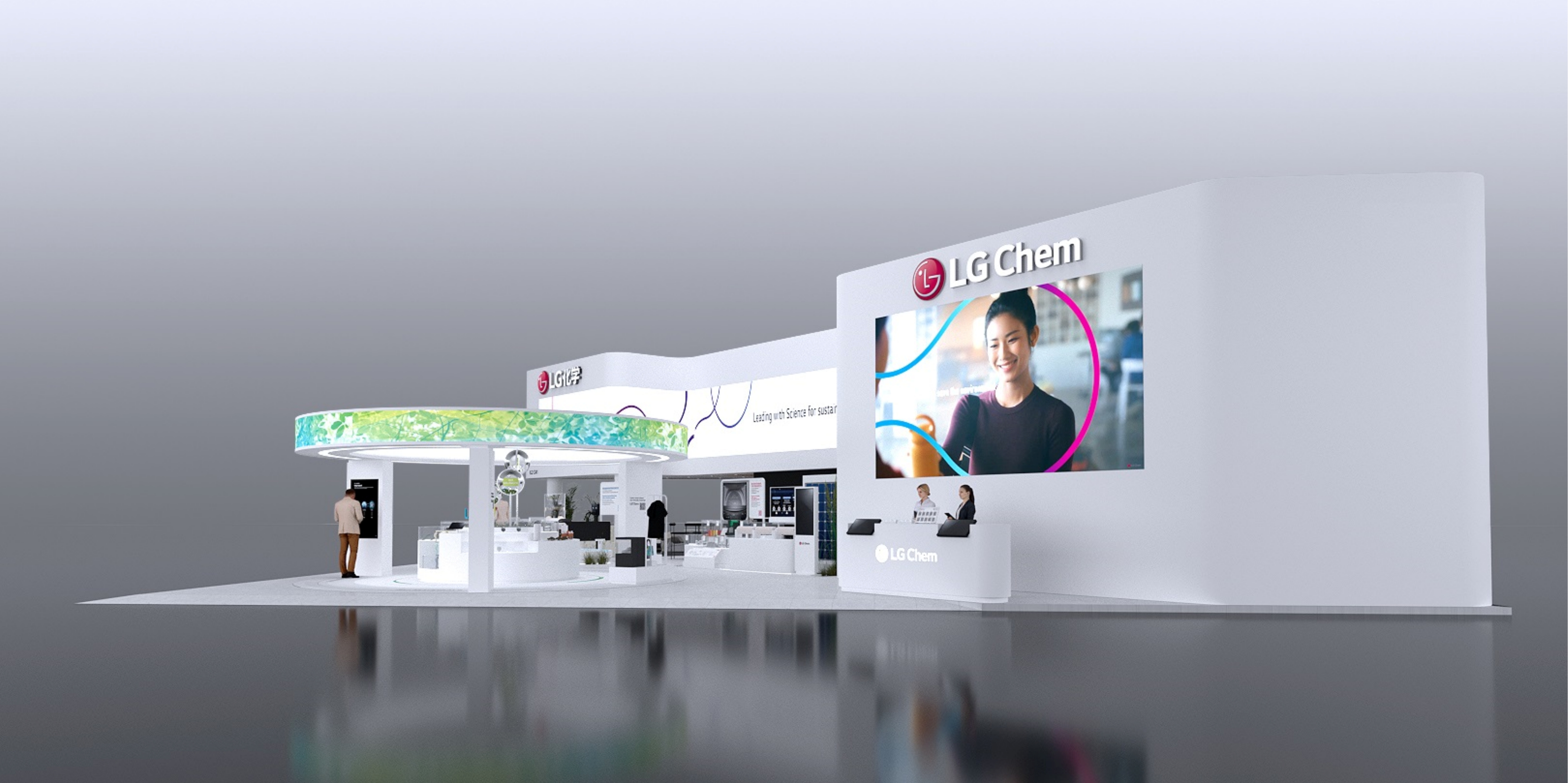 LG화학은 지속가능하고 혁신적인 제품(The sustainable and innovative solutions) 테마로 친환경 제품과 고부가 전략 제품을 선보인다.