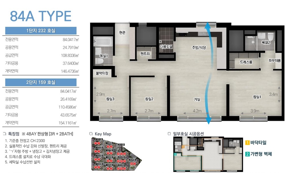 공급 타입에 대한 간단한 설명을 드려보자면, 84A 타입의 경우 판상형 포베이 구조로 설계되어 있는데요.