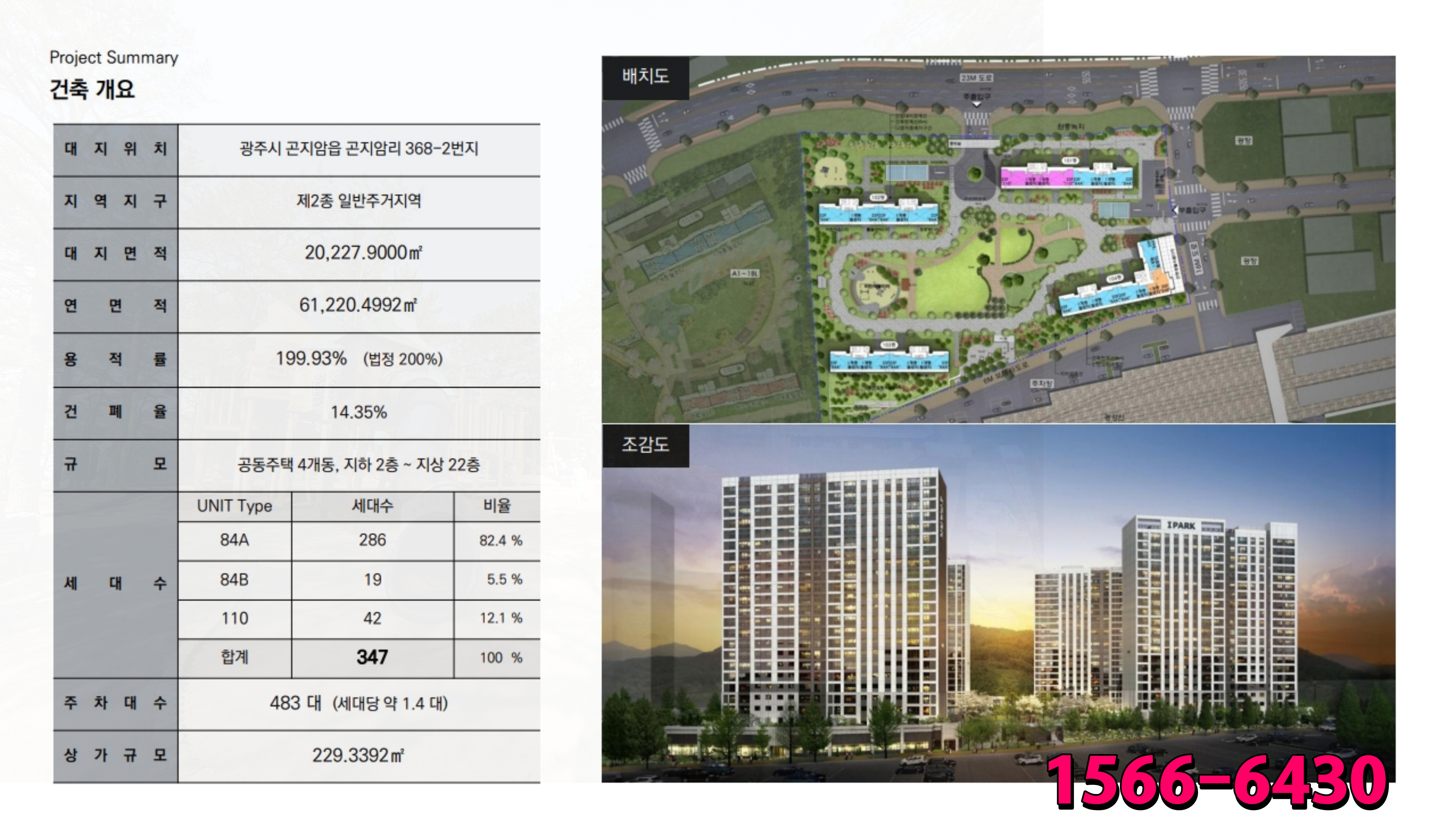 연면적 61,220.49㎡, 대지면적 20,007.90㎡의 부지 위에 지하 2층에서 지상 22층까지 4개 동, 총 347세대 규모로 공급이 진행 중에 있습니다.
