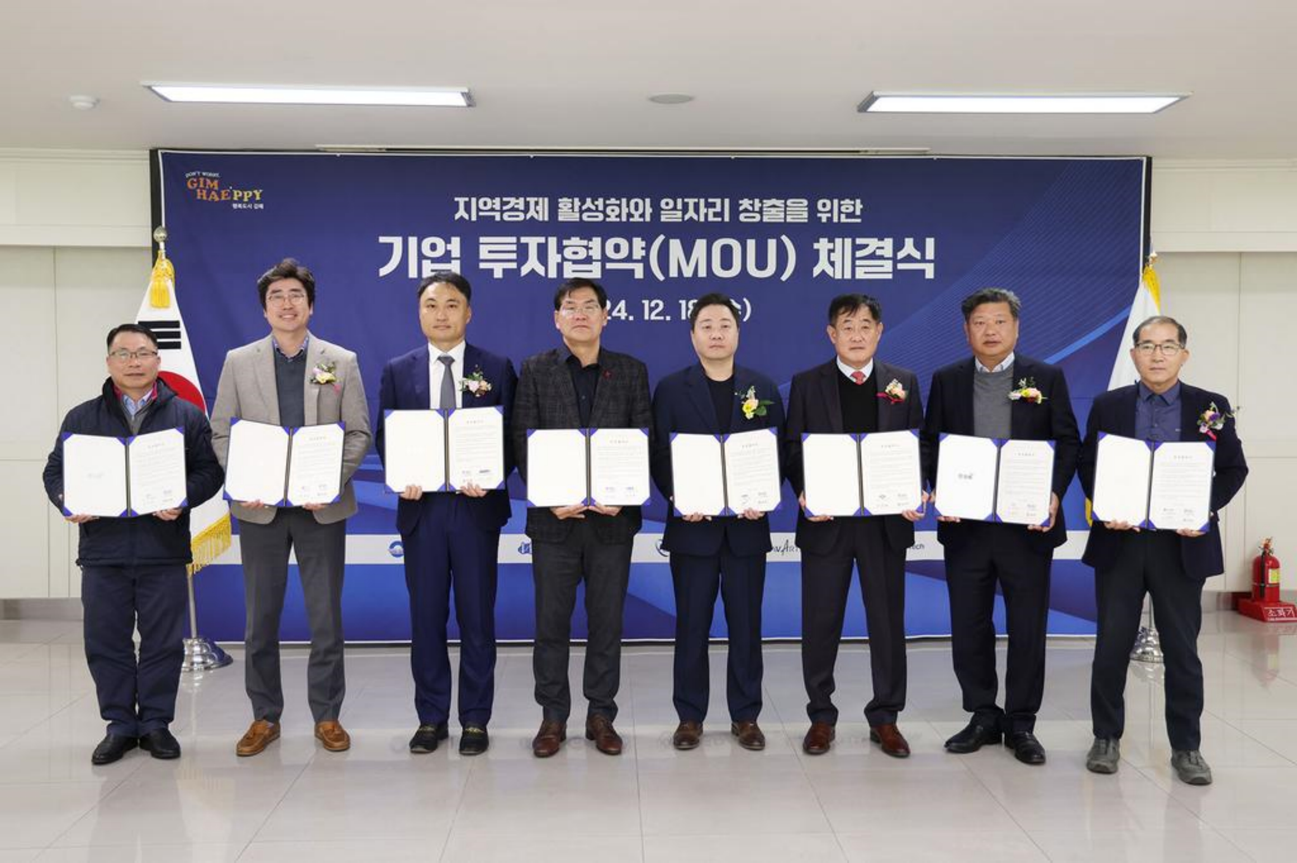 김해시는 18일 오후 3시 20분 시청 소회의실에서 국내 9개 유망 기업과 1,208억원 규모 투자협약을 체결했다.