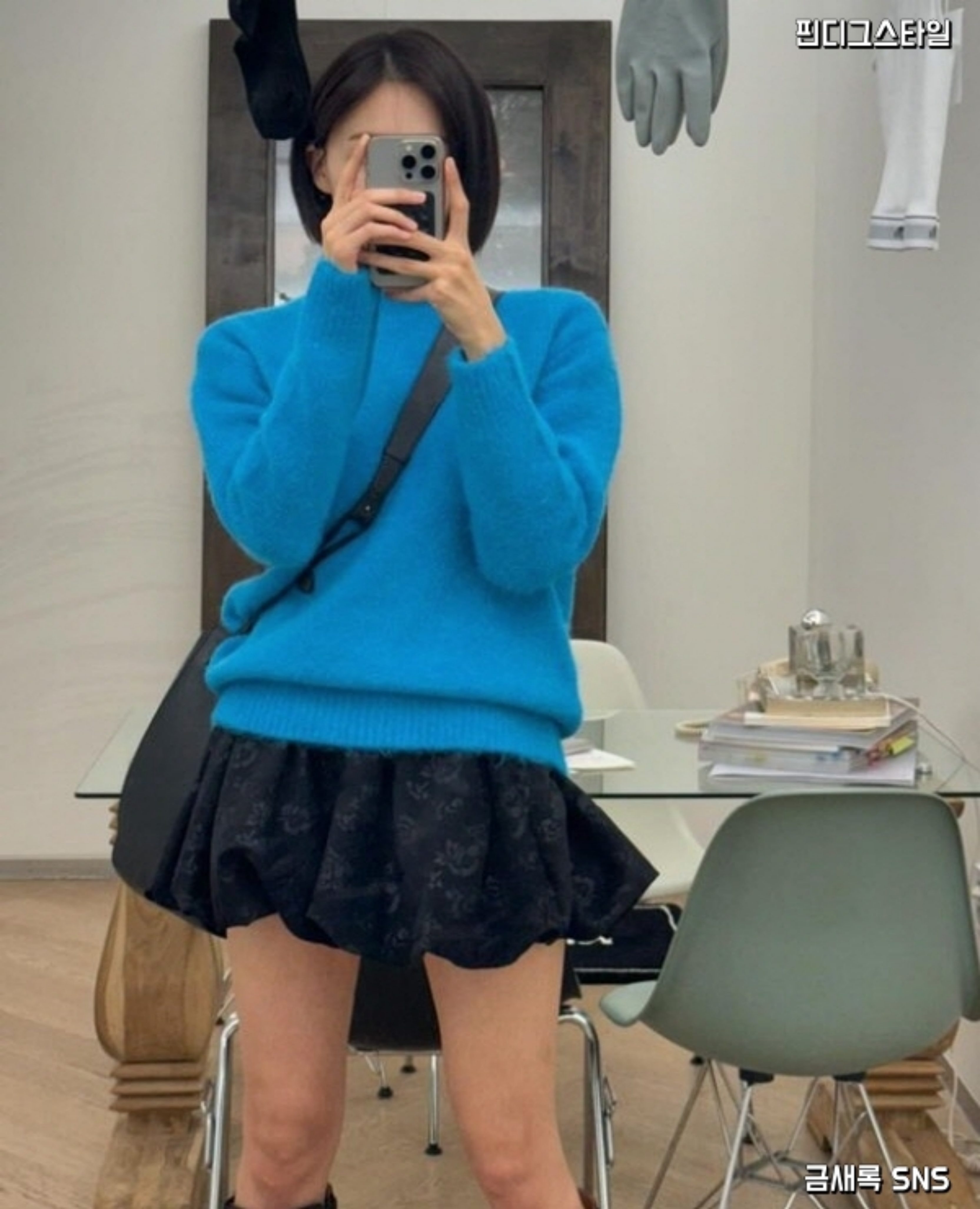 금새록이 자신의 SNS에 올린 이 사진은 팬들 사이에서 매우 주목을 받았답니다. 블루 컬러의 알파카 니트 스웨터와 벌룬 스타일의 미니스커트까지 상당히 이쁜 콜라보를 보여주었는데요.