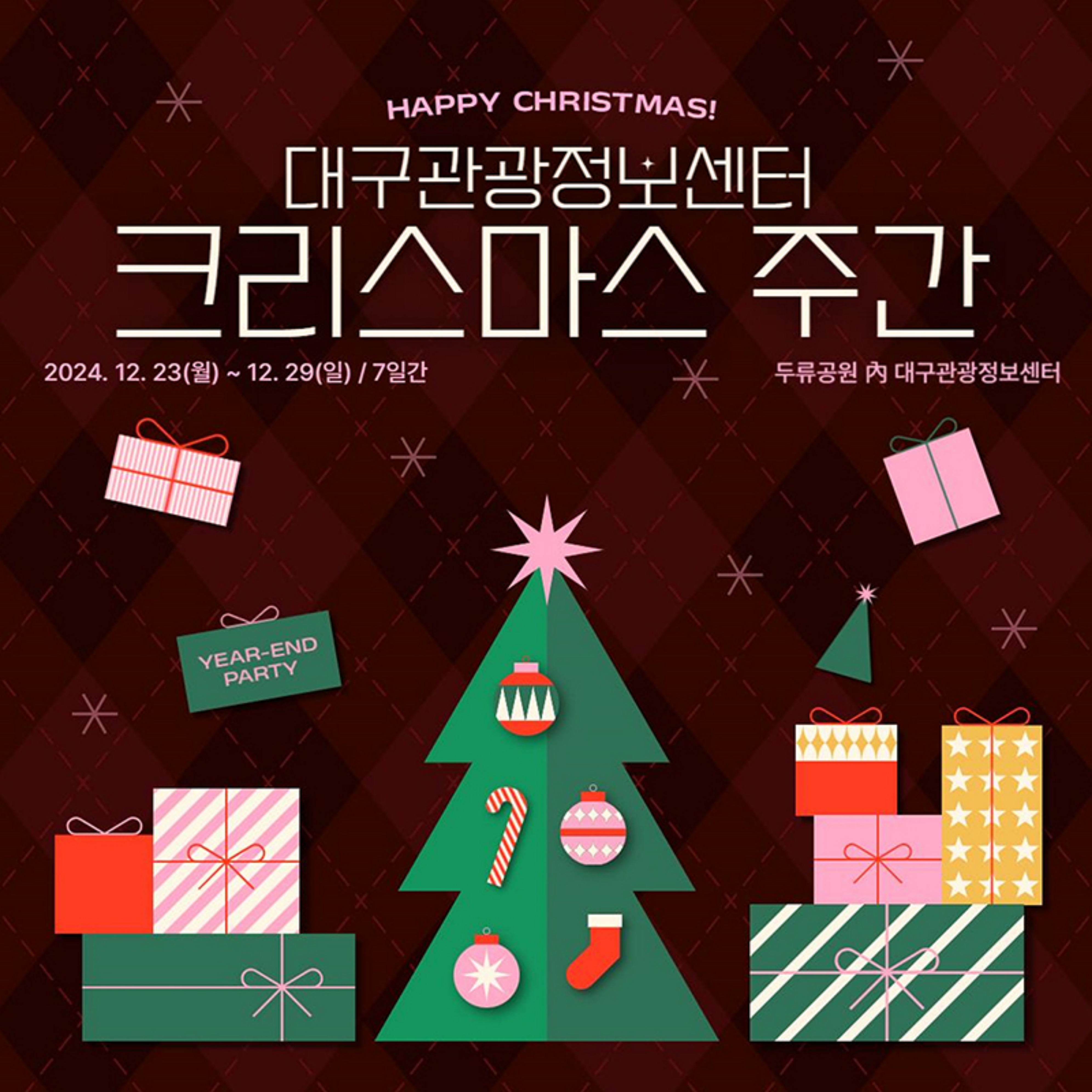 대구관광정보센터에서는 2024년 크리스마스와 연말 시즌을 맞아 대구시민을 위한 대구관광정보센터 크리스마스 주간 행사를 운영한다.