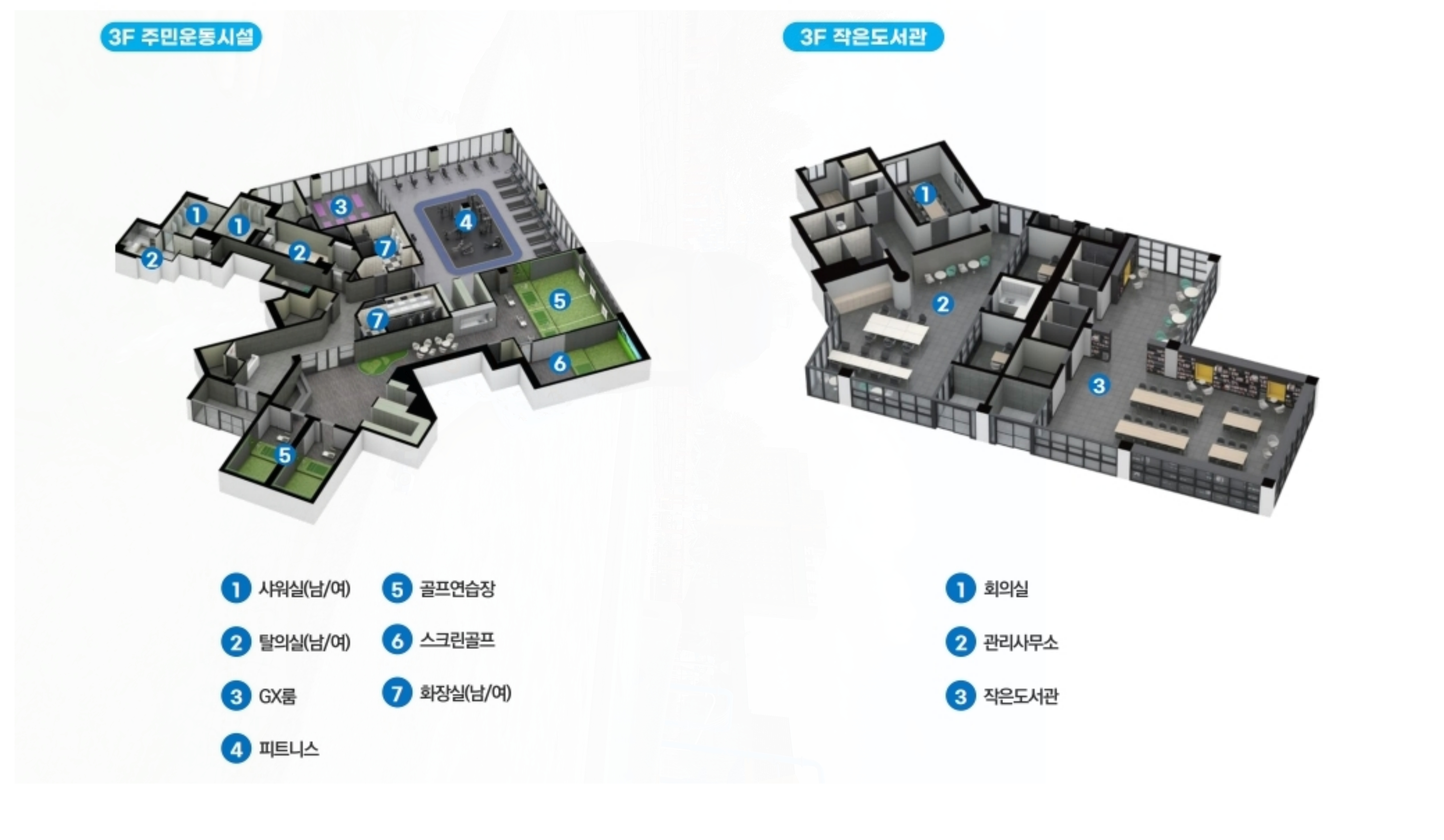 성인 입주민을 위한 건강 커뮤니티로는 최신 운동 기구를 갖춘 피트니스센터, GX룸, 스크린 골프존, 인도어 골프연습장 등이 조성되어 있습니다.