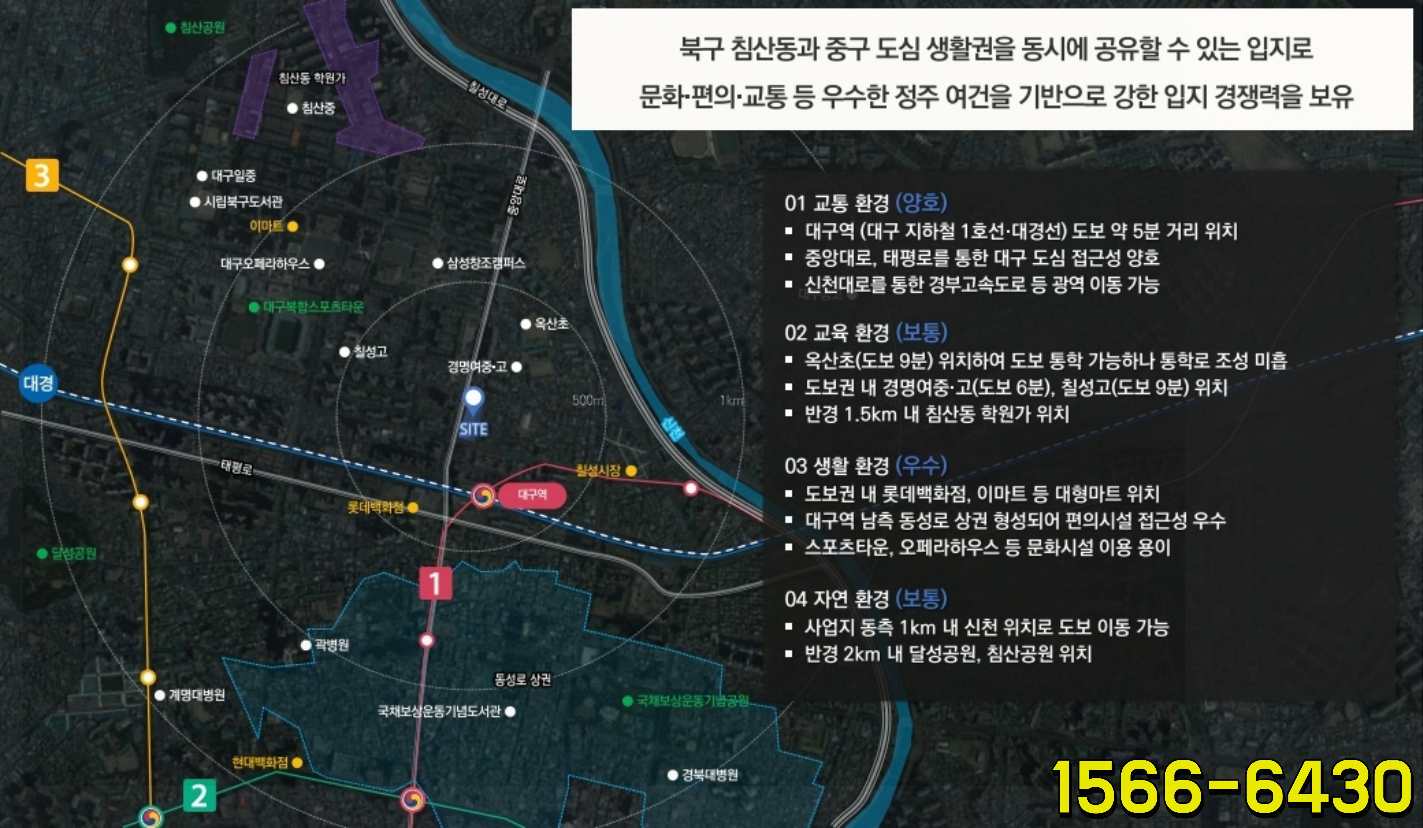 생활 인프라: 대구 최대 번화가인 동성로가 지척에 위치하며, 롯데백화점, 이마트 등 대형 쇼핑 시설과 전통시장까지 편리하게 이용할 수 있습니다.