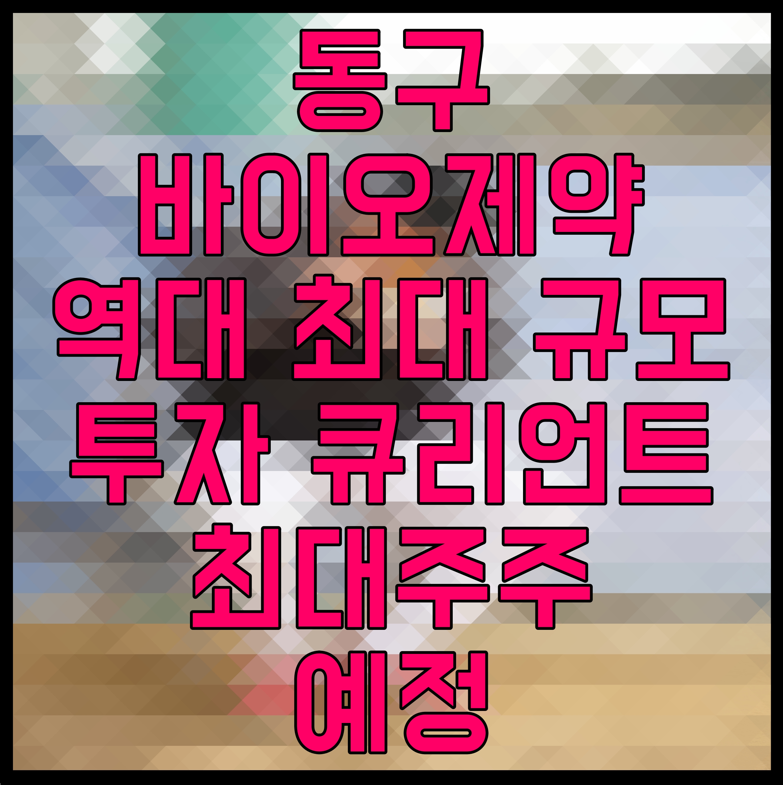동구바이오제약 역대 최대 규모 투자 큐리언트 최대주주 예정