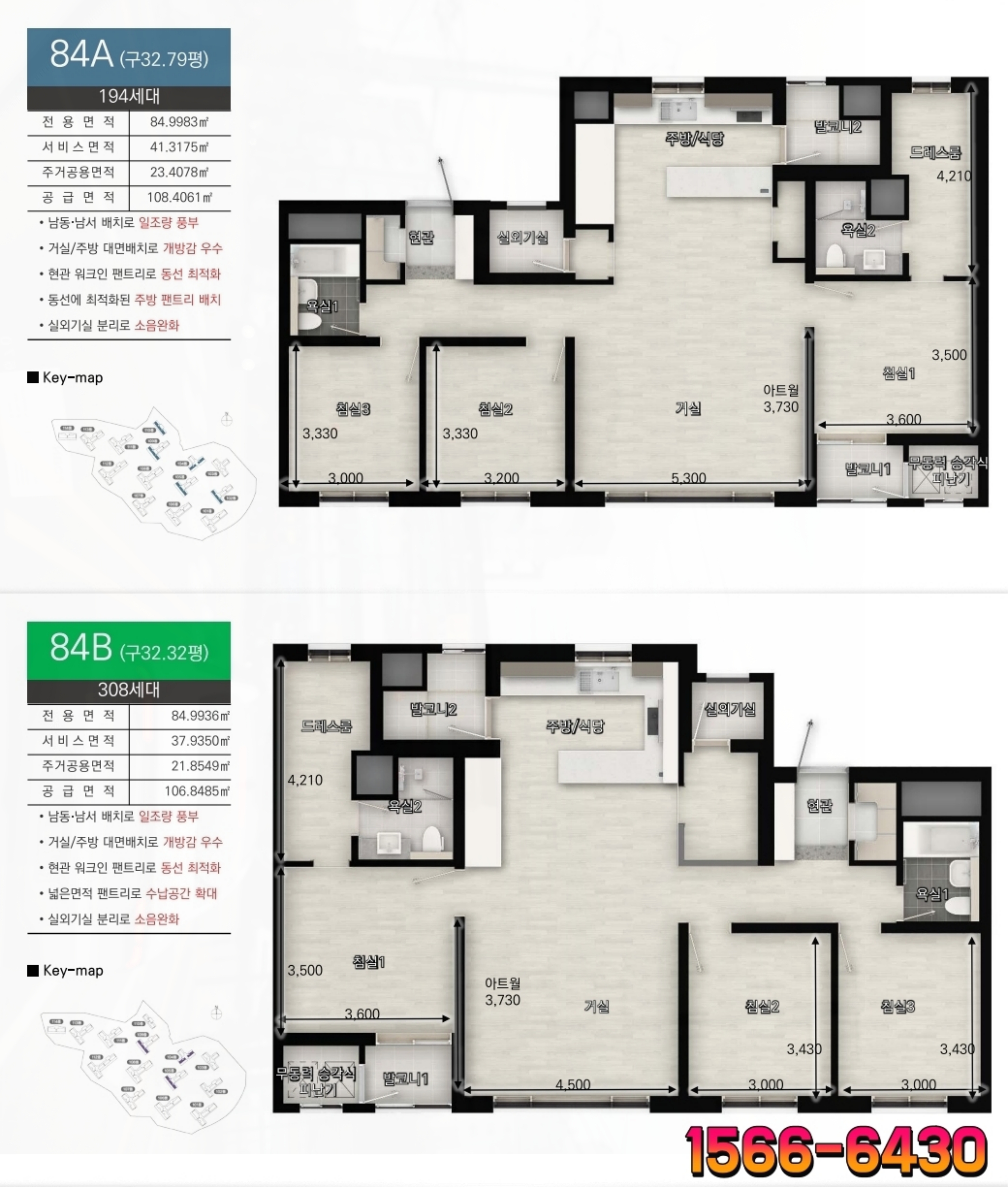 모두 맞통풍이 가능한 구조인 4베이 판상형으로 설계되어 있답니다.
