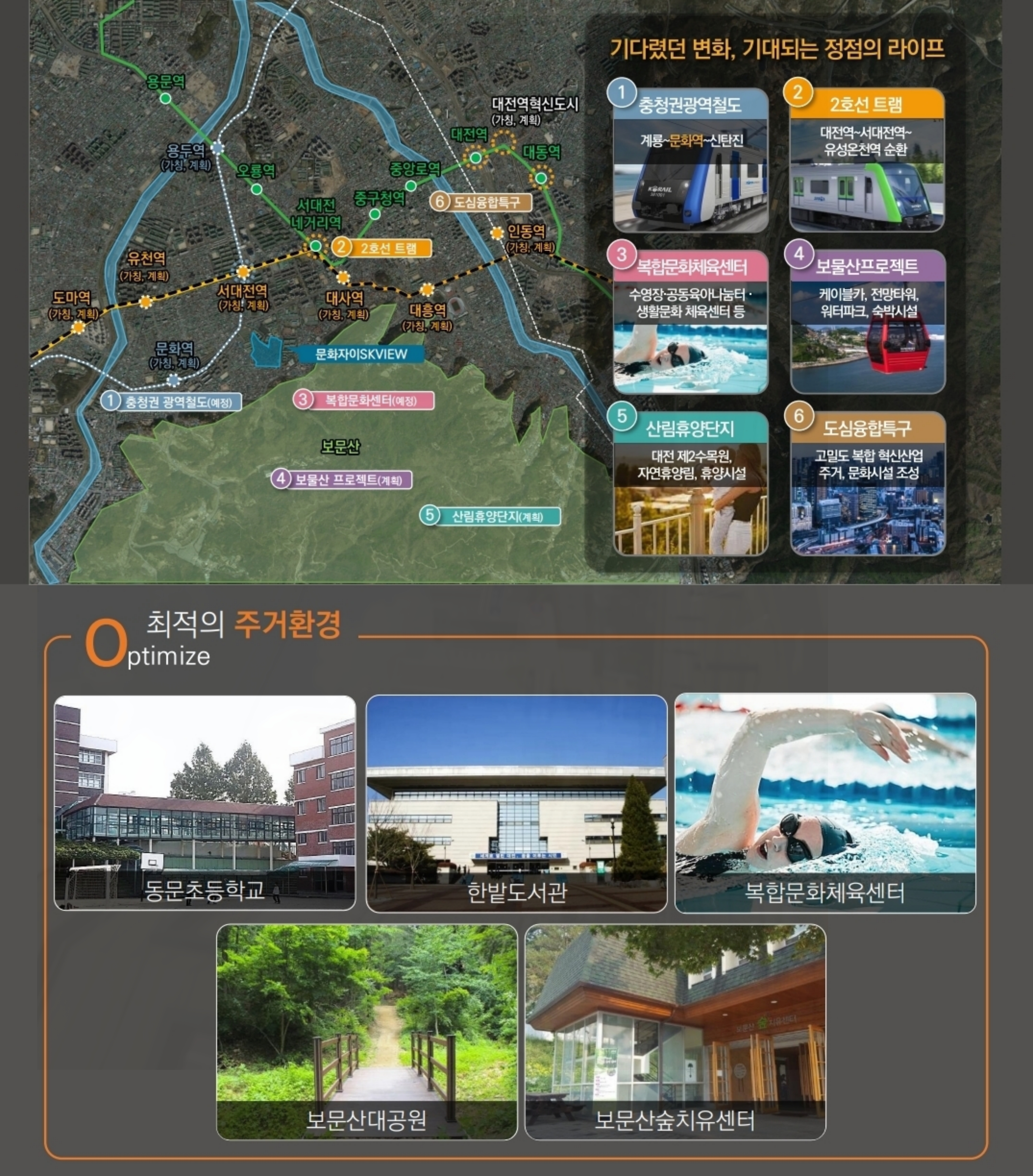 문화자이SKVIEW는 대전 원도심의 새롭게 개발되는 지역에 위치하여 풍부한 생활 인프라를 편리하게 누릴 수 있습니다.