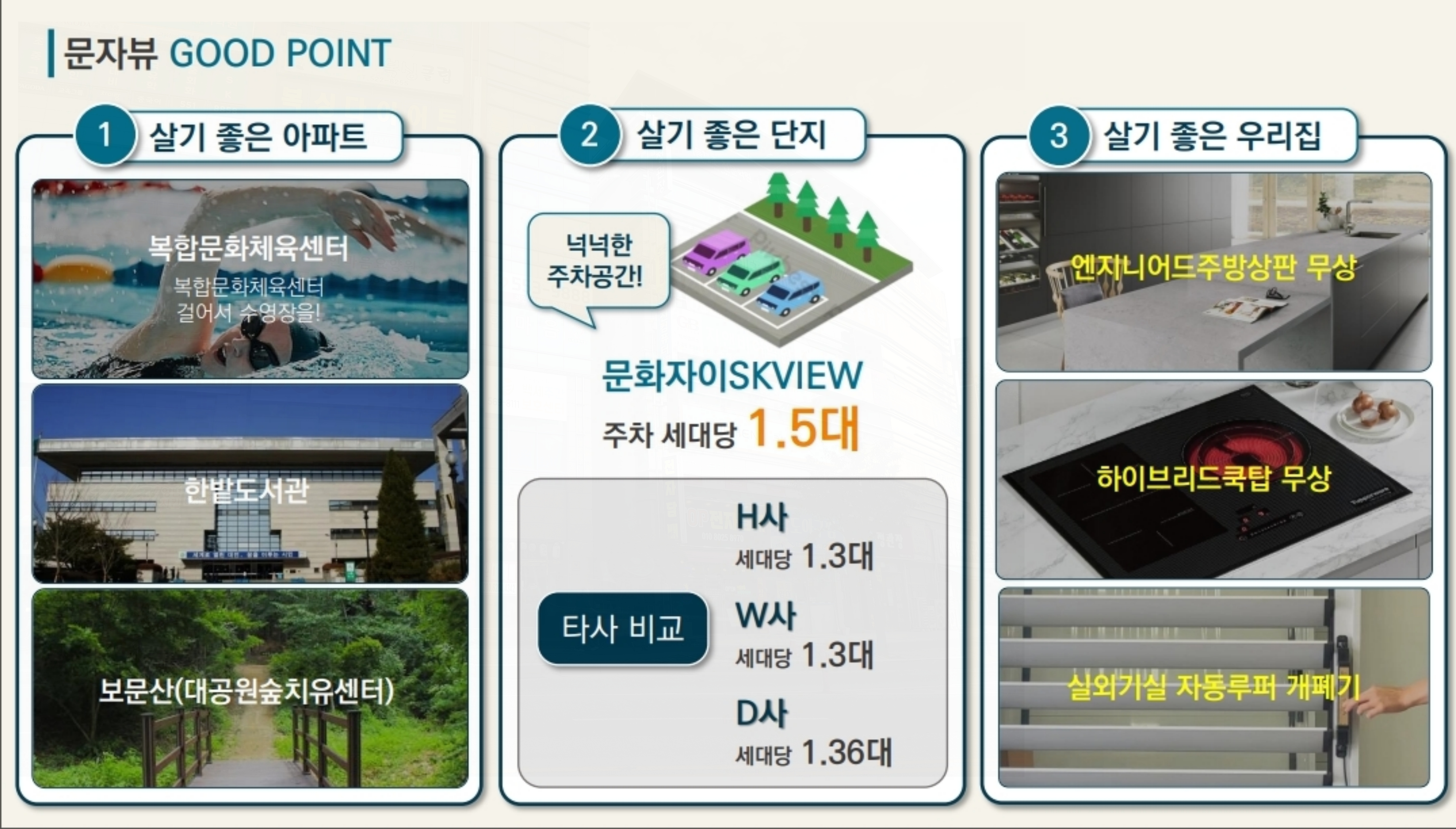 주차는 세대당 약 1.3대 수준으로 넉넉하게 계획되어 주차 불편을 최소화했습니다.