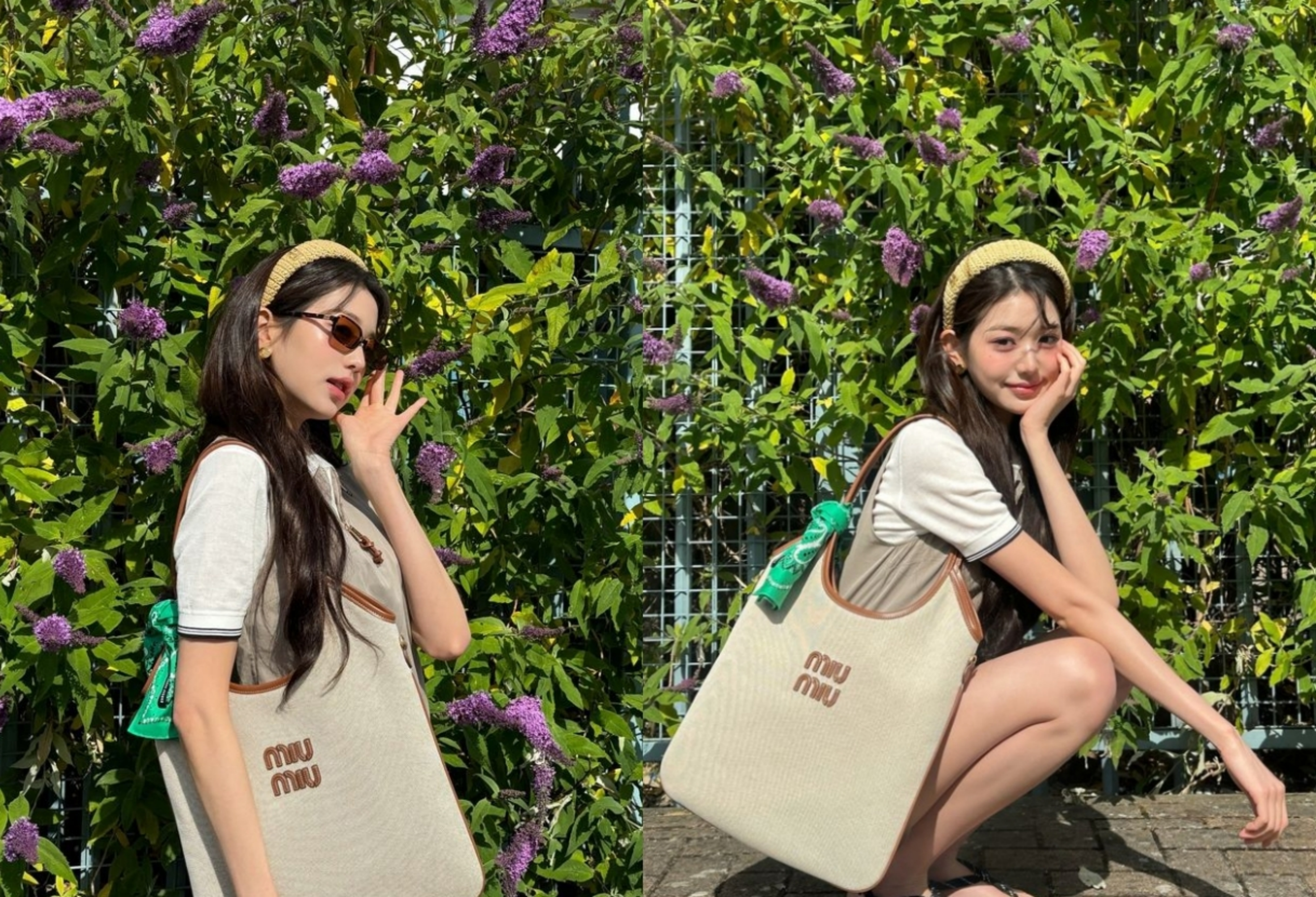 미우미우 원피스 , 미우미우 캔버라백 , 헤어밴드까지 도도매 보이면서 청순함을 물씬 풍기는 게 오묘한 매력을 발산하고 있다.